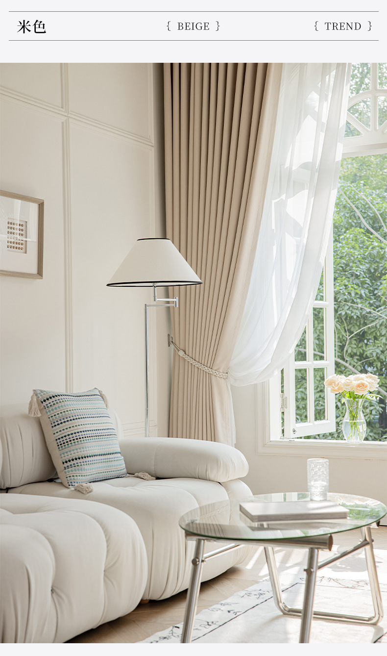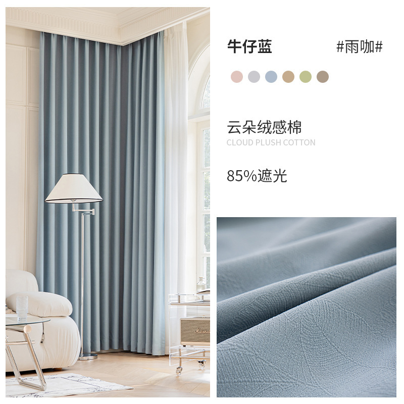 크림풍 자카드 두꺼운 구름같은 벨벳 느낌의 면 커튼 거실 침실 고급 차광 면마 완제품 커튼스토어 가기