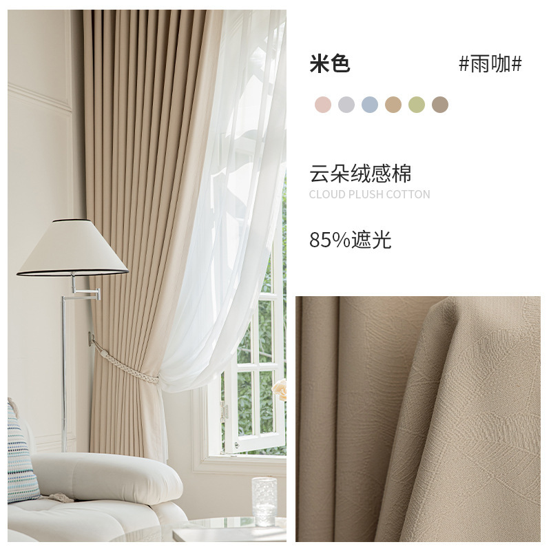 크림풍 자카드 두꺼운 구름같은 벨벳 느낌의 면 커튼 거실 침실 고급 차광 면마 완제품 커튼