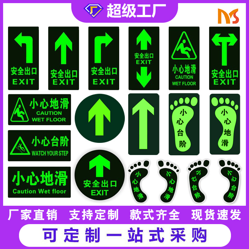 공장 직접 pvc 화재 안전 스티커 안전 출구 표지판 조심스럽게 슬라이드 단계 발광 스티커스토어 가기