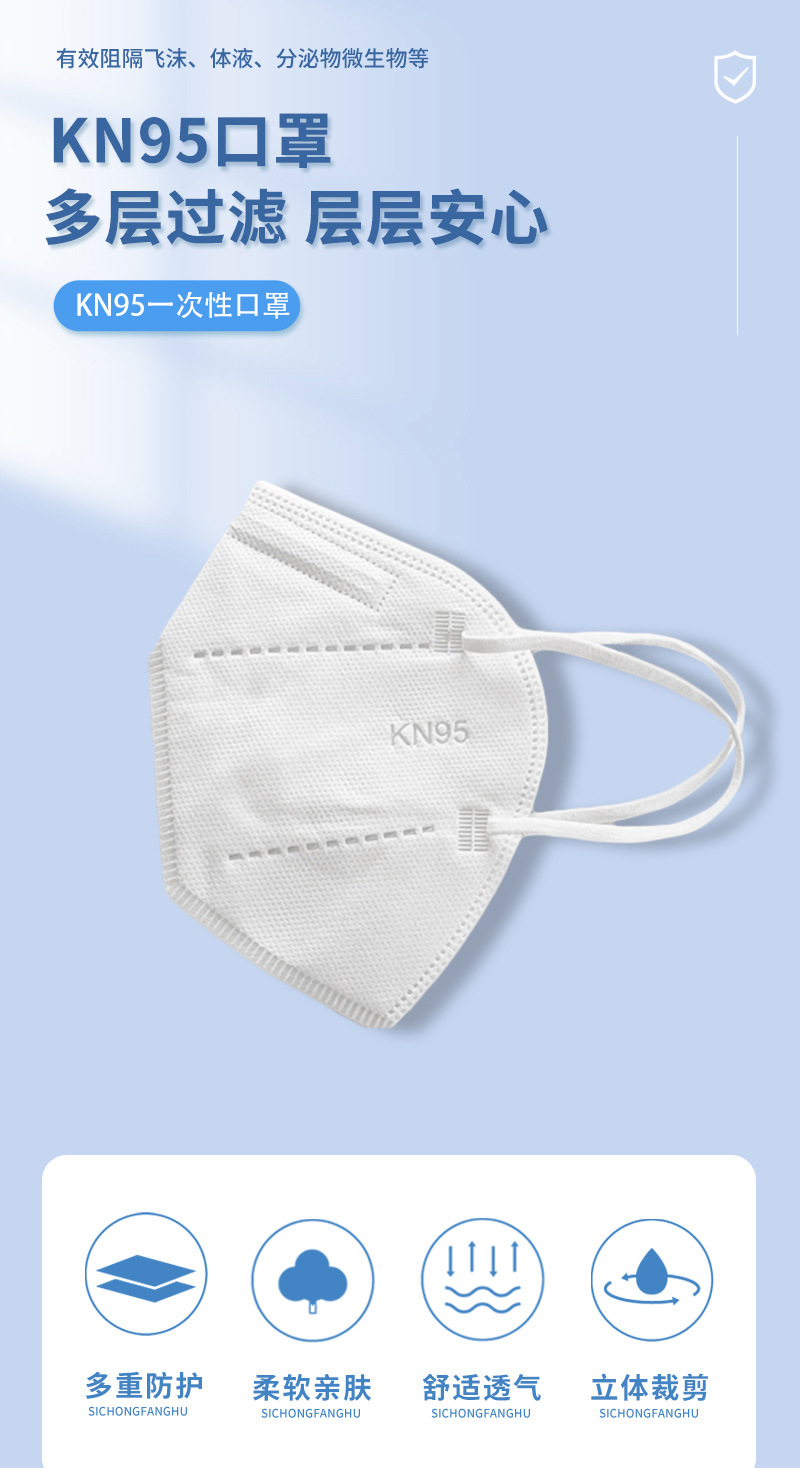 성인 일회용 산업용 방진 마스크 흰색 독립형 입체 kn95 보호 마스크 매일 사용 가방 휴대용스토어 가기