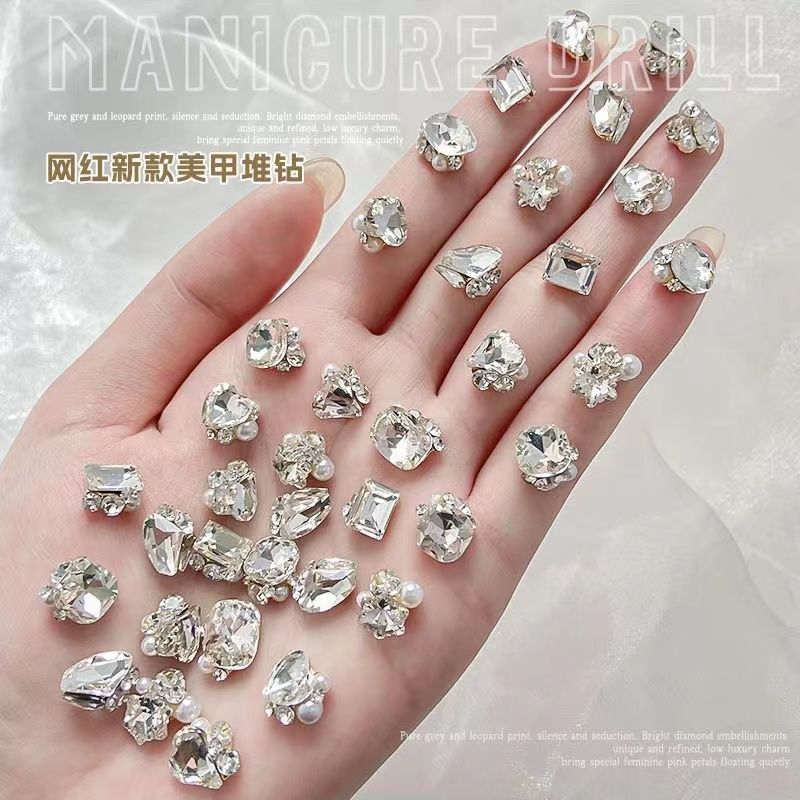 새로운 네일 아트 파일 드릴 완성 된 비뚤어진 심장 직사각형 사랑 지방 스퀘어 도끼 드릴 슈퍼 플래시 라이트 럭셔리 올 매치 진주 크리스탈 드릴스토어 가기