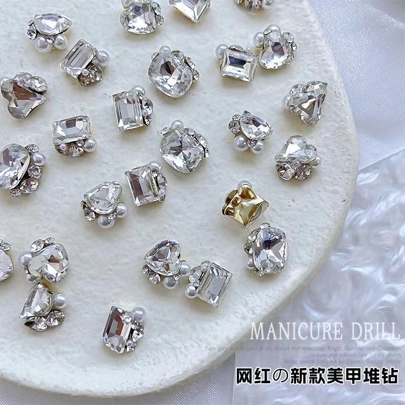 새로운 네일 아트 파일 드릴 완성 된 비뚤어진 심장 직사각형 사랑 지방 스퀘어 도끼 드릴 슈퍼 플래시 라이트 럭셔리 올 매치 진주 크리스탈 드릴