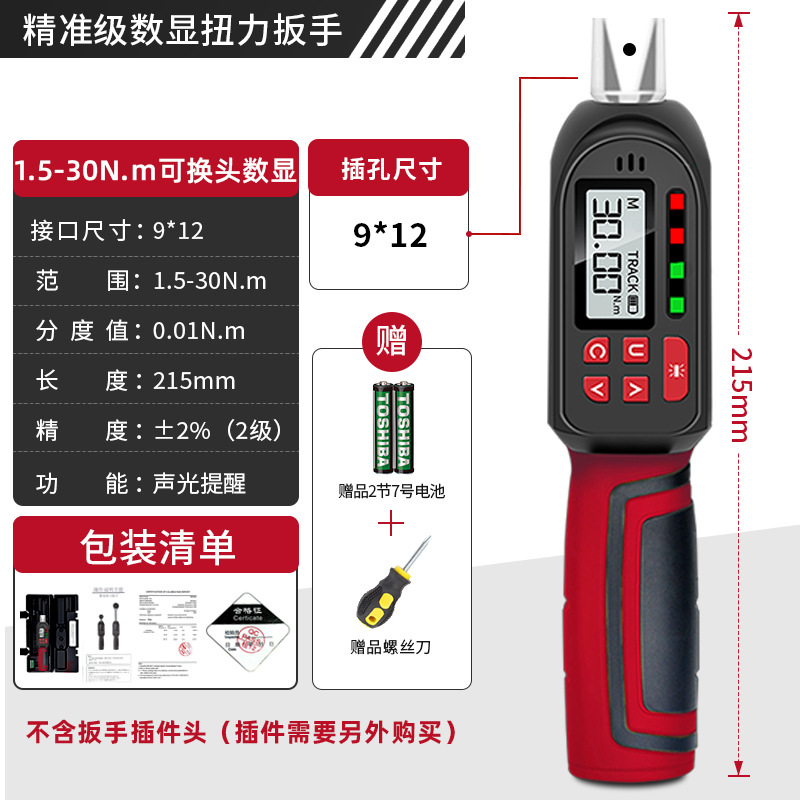 • 9*12 교체 가능한 헤드 디지털 디스플레이 짧은 스타일 1.5-30N.m(렌치 헤드 인서트 제외)
