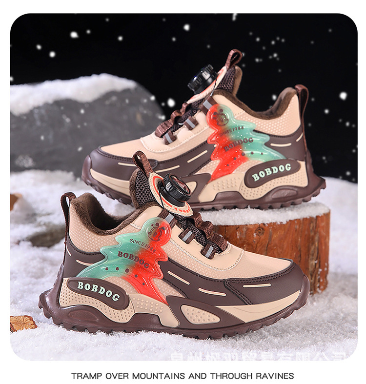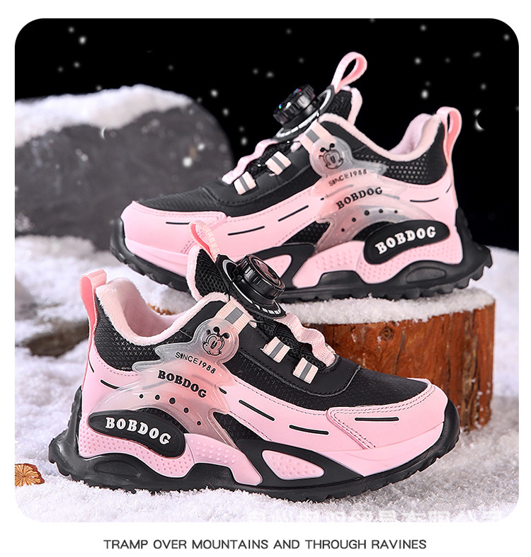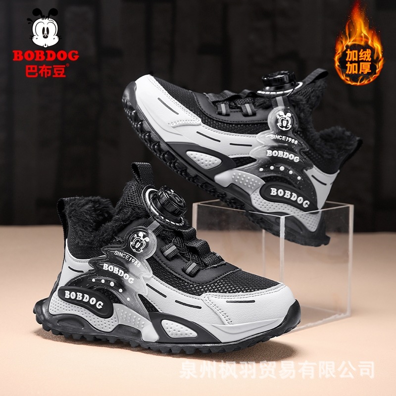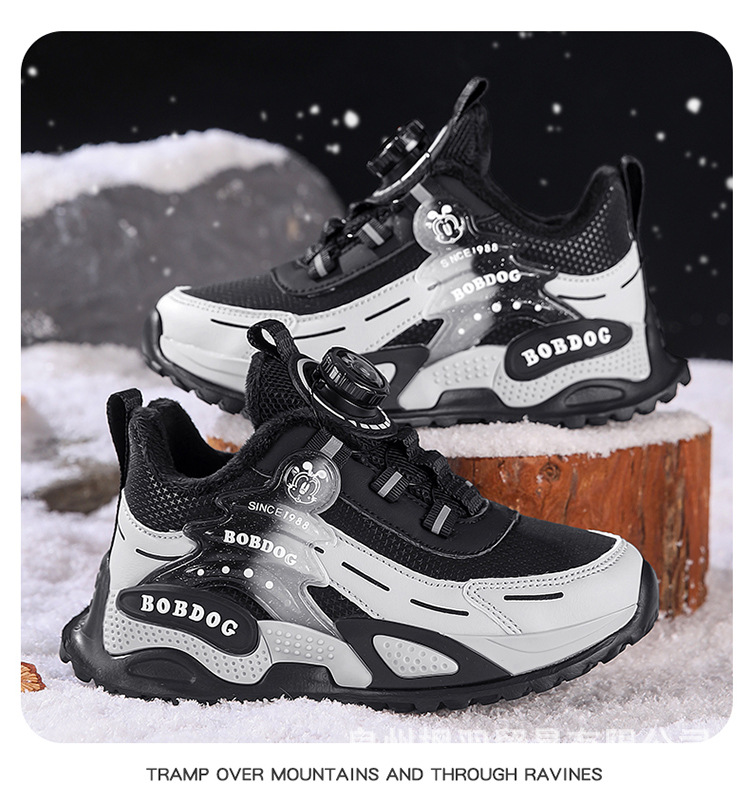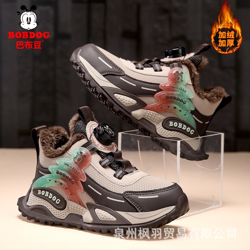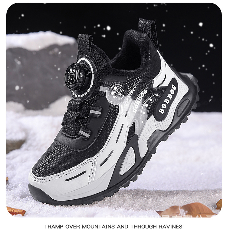 바부 콩 소년 겨울 기모 양면 신발 2024 새로운 cuhk 소녀 방수 가죽 어린이 운동화
