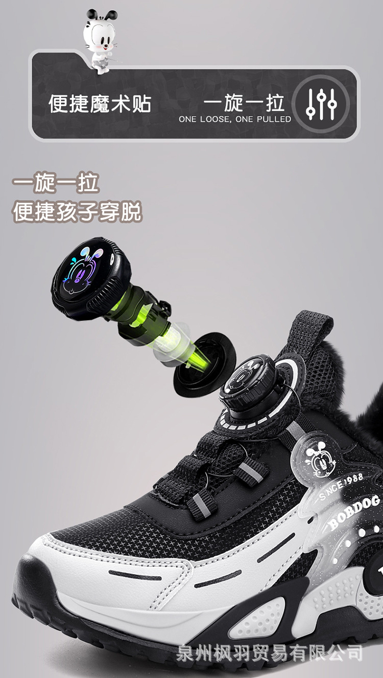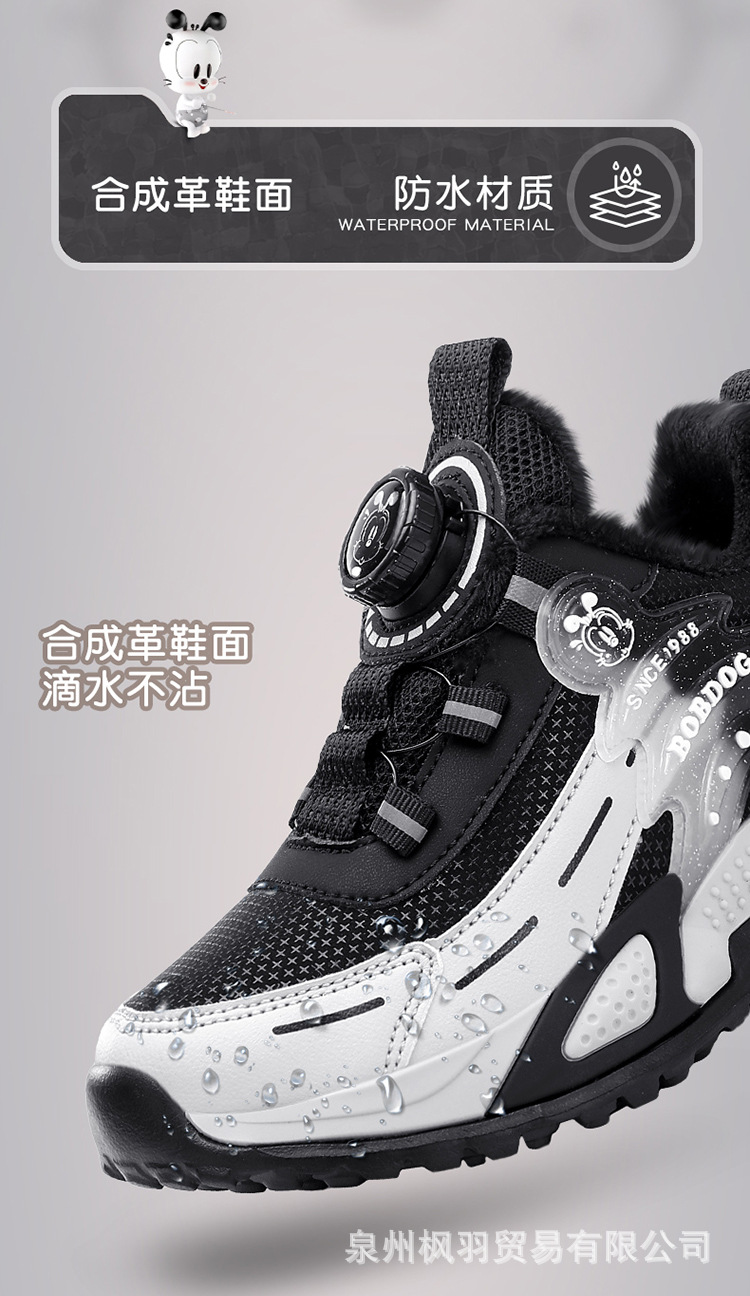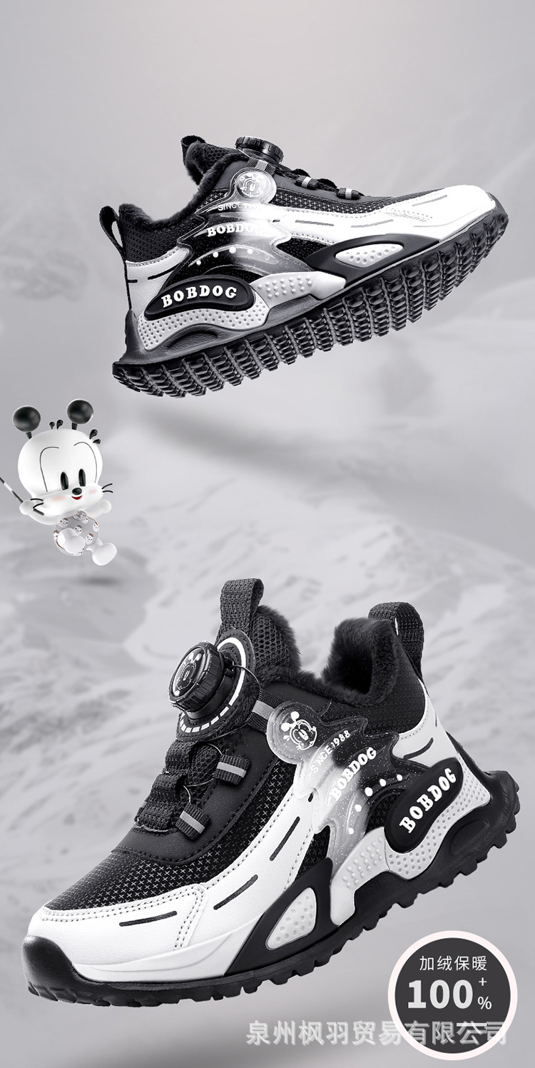 바부 콩 소년 겨울 기모 양면 신발 2024 새로운 cuhk 소녀 방수 가죽 어린이 운동화