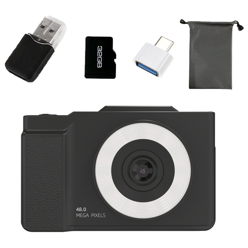 • 블랙(플립 스크린) + 32G 메모리 카드 + 카드 리더기 + 변환 헤드 + 가방