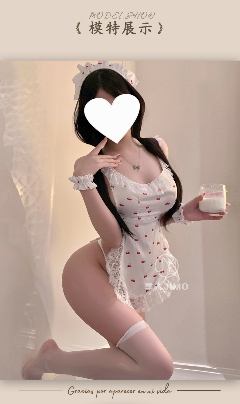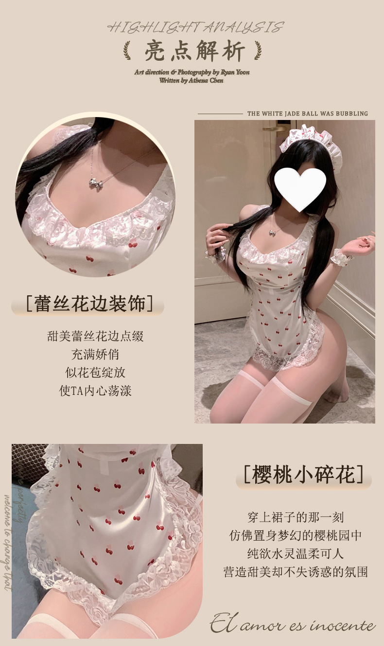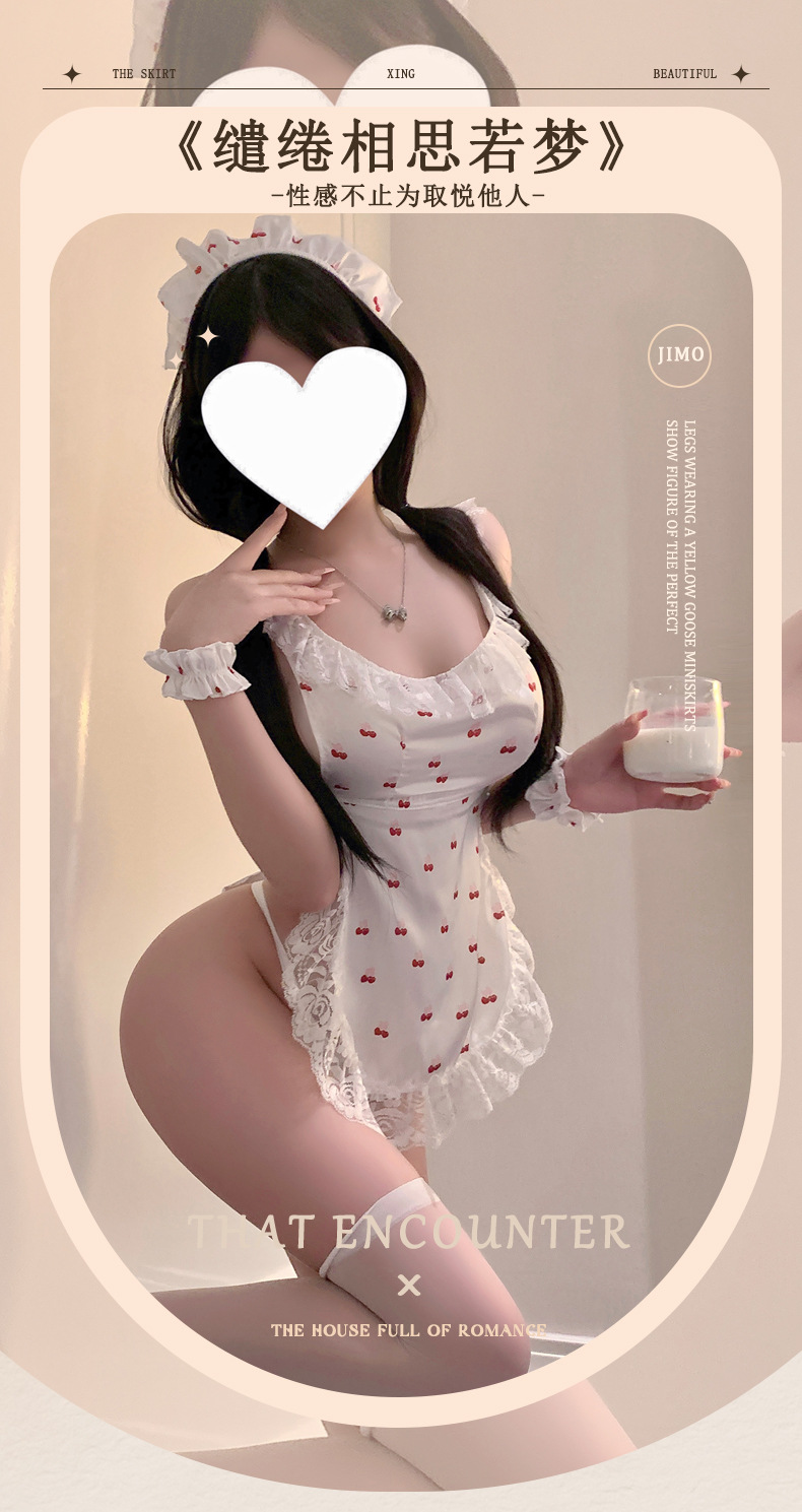 시즌 종료 체리 리틀 메이드 퓨어 섹시 체리 프린트 레이스 메이드 프라이빗 하우스 타이 밥 펀 파자마스토어 가기