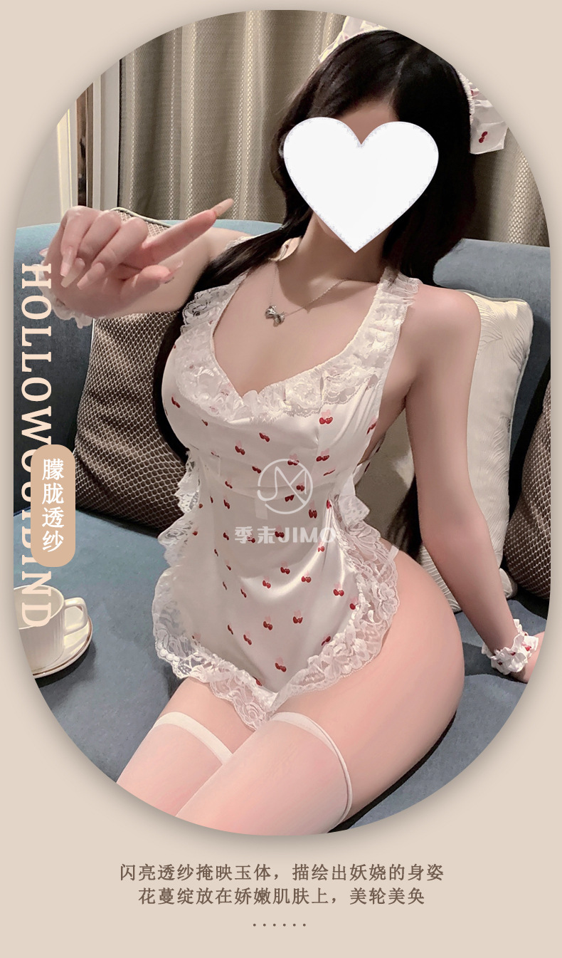 시즌 종료 체리 리틀 메이드 퓨어 섹시 체리 프린트 레이스 메이드 프라이빗 하우스 타이 밥 펀 파자마