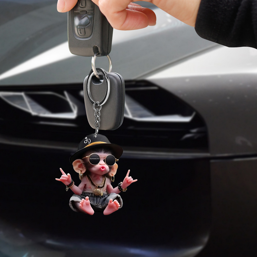 국경 간 잘 생긴 힙합 스타일 작은 원숭이 어린이 선물 키 체인 펜던트 자동차 현관 장식 액세서리