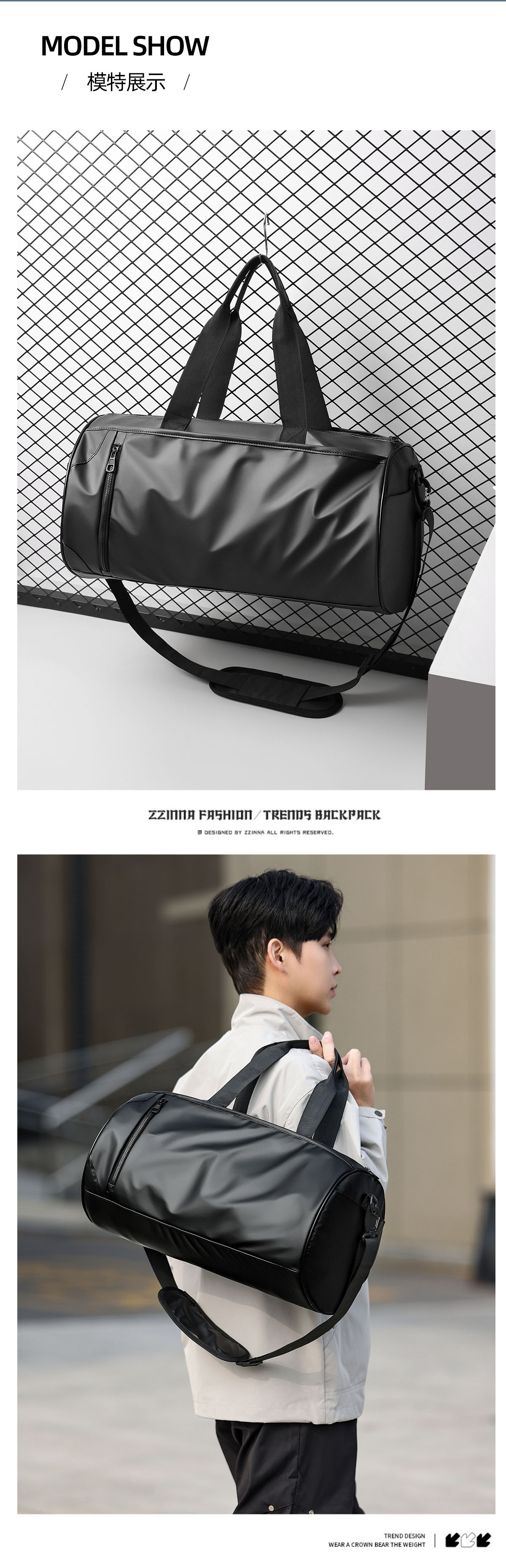 비즈니스 여행을위한 남성 패션 보관 가방 멀티 포켓 분류 방수 휴대용 수하물 가방 건조하고 젖은 별도의 통근 여행 가방