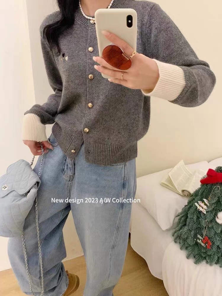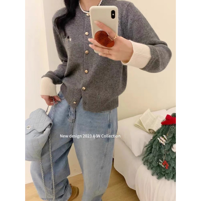 한국 스타일 사랑 자수 둥근 목 니트 카디건 여자 가을 겨울 느슨한 올매치 니트 스웨터 베이스 코트 캐시미어스토어 가기