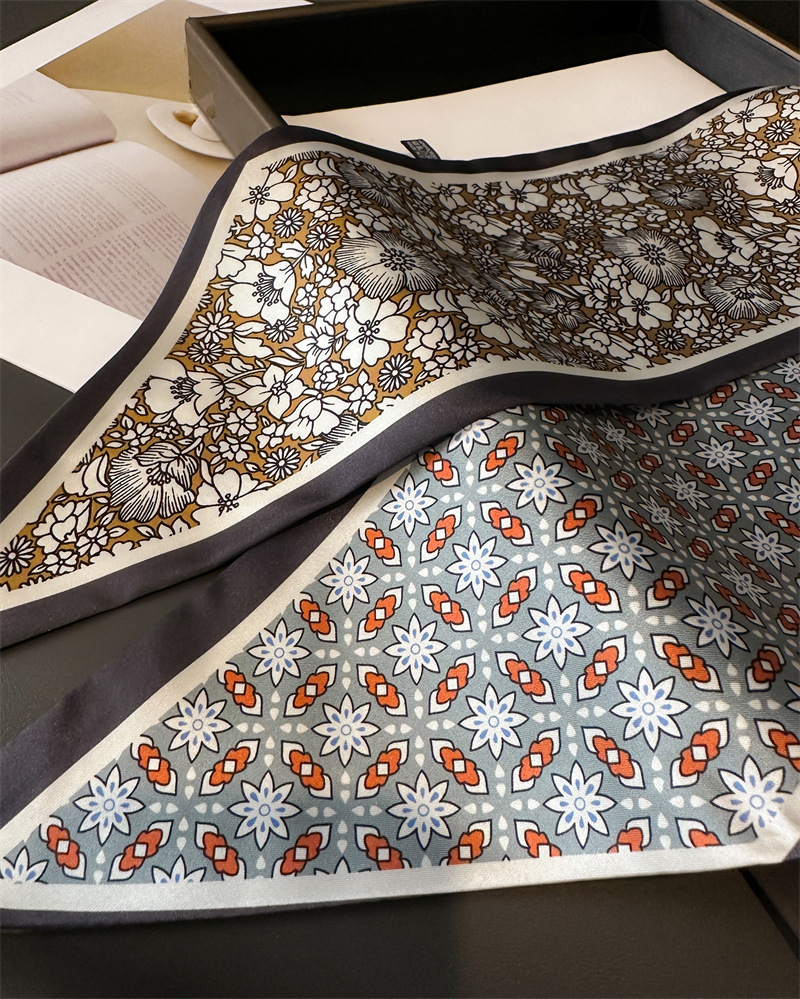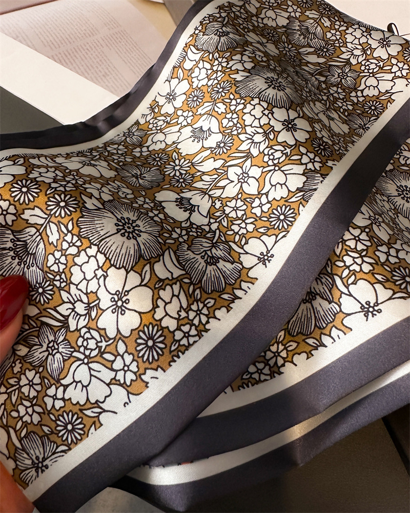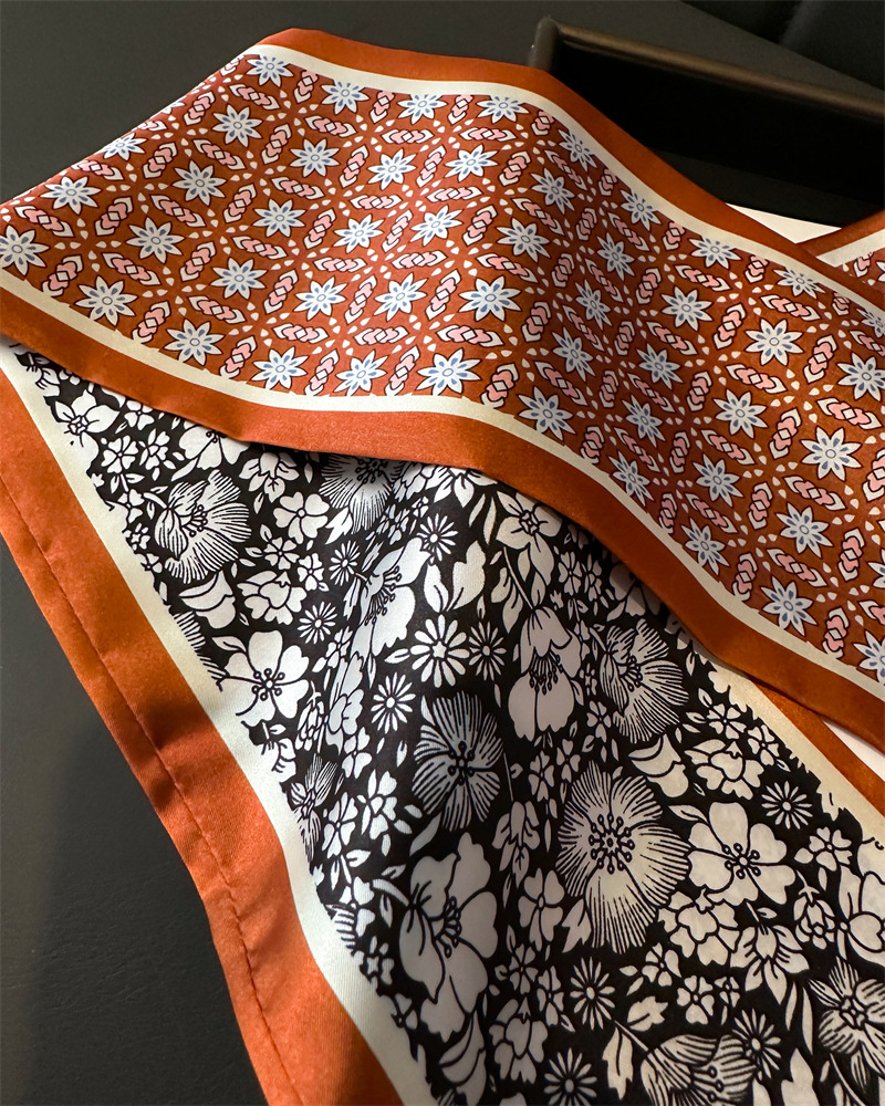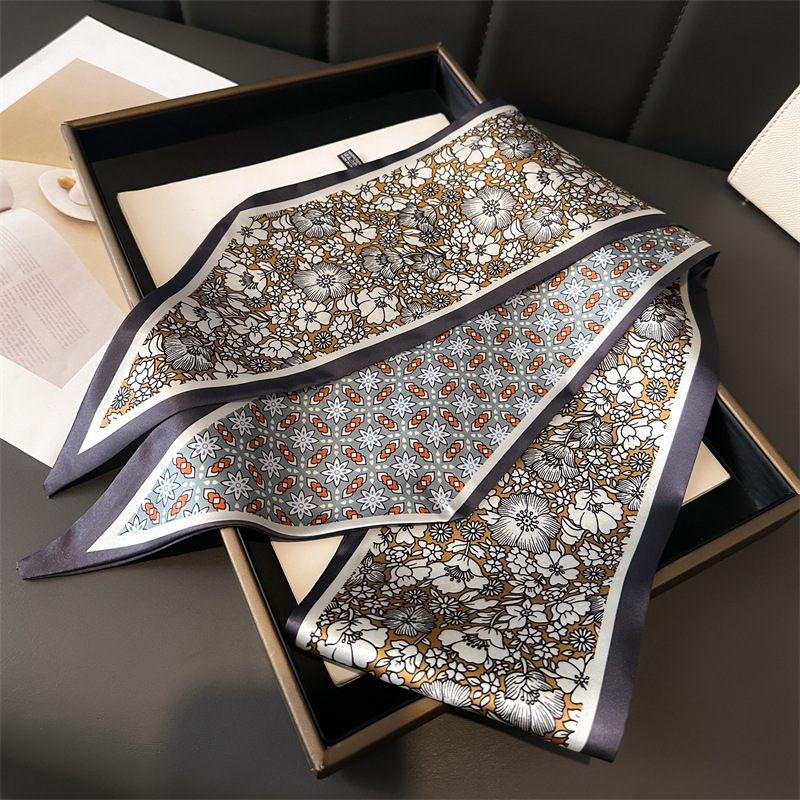 다기능 컬러 매칭 더블 레이어 스카프 장식 실크 스카프 통근 봄/여름 베블 헤어 스카프 올 매치 얇은 좁은 리본 여성용 스카프