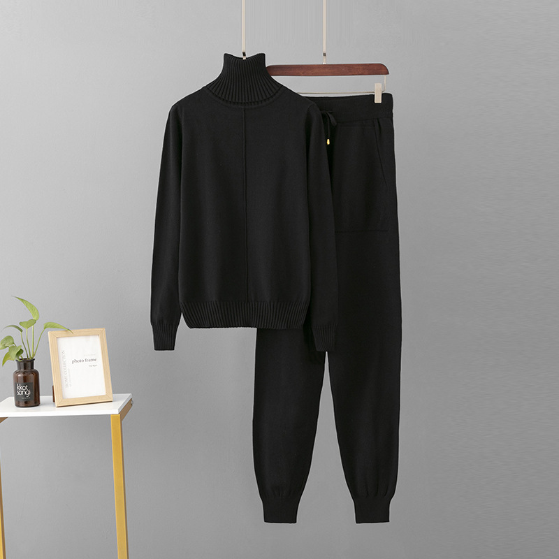 국경 간 아마존 이베이 울 세트 터틀넥 스웨터 높은 허리 느슨한 바지 캐주얼 스포츠 세트 여성스토어 가기