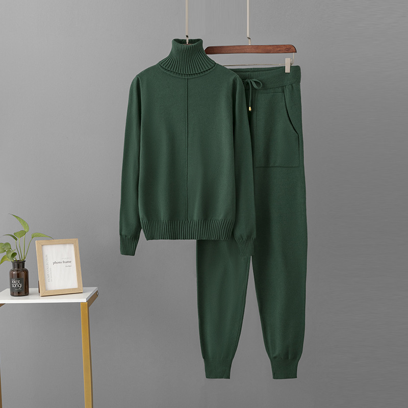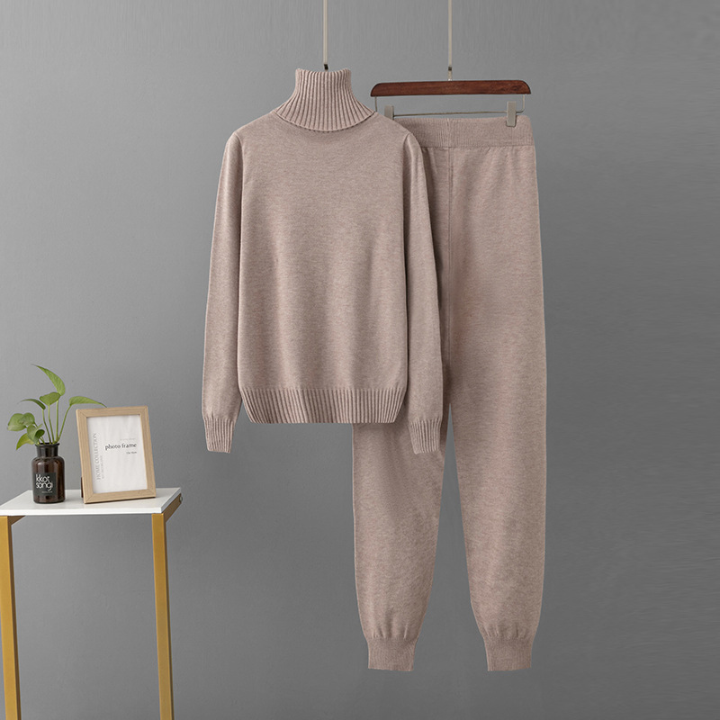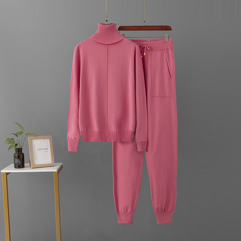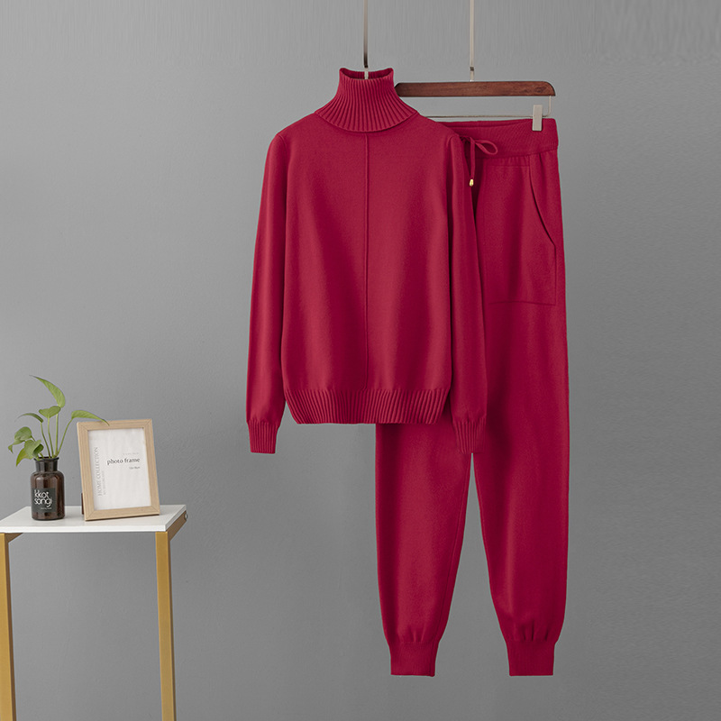 국경 간 아마존 이베이 울 세트 터틀넥 스웨터 높은 허리 느슨한 바지 캐주얼 스포츠 세트 여성