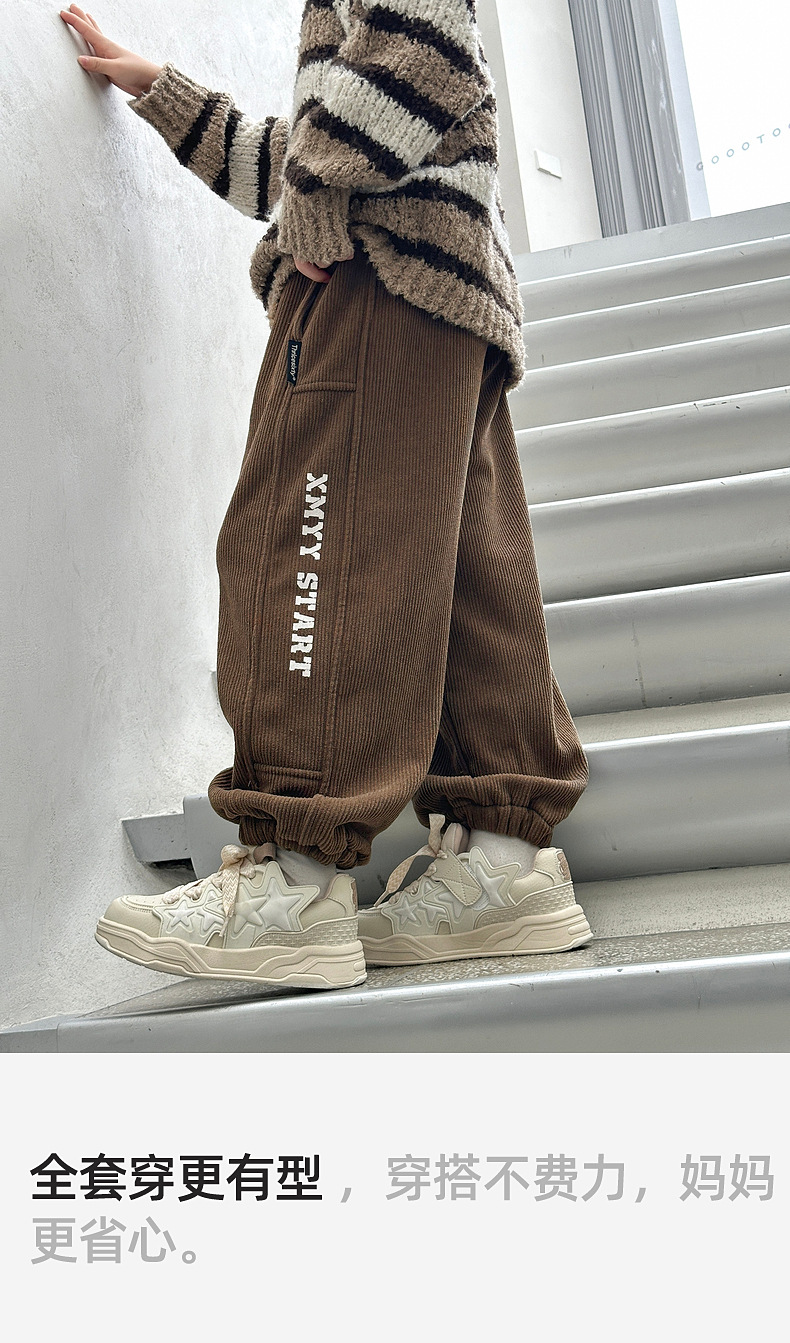 湖州织里童装2024秋冬新款儿童一体绒裤子运动裤男童加绒卫裤批发