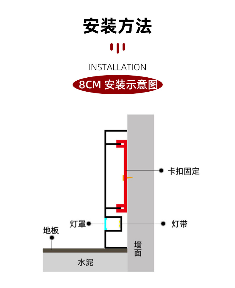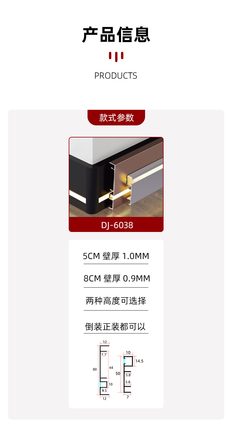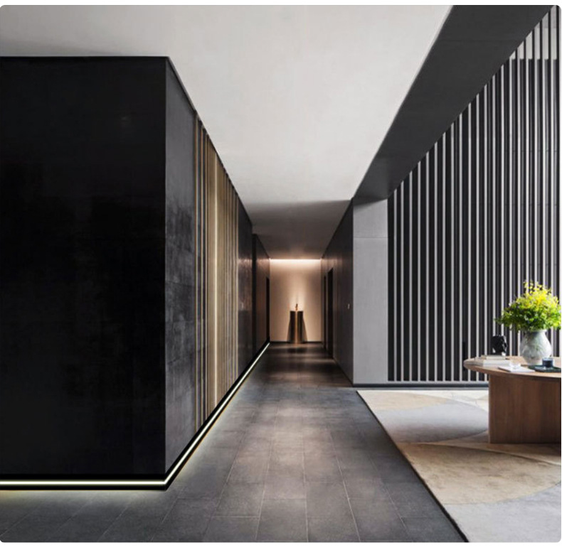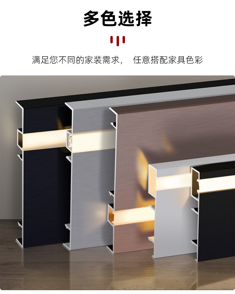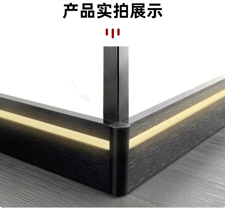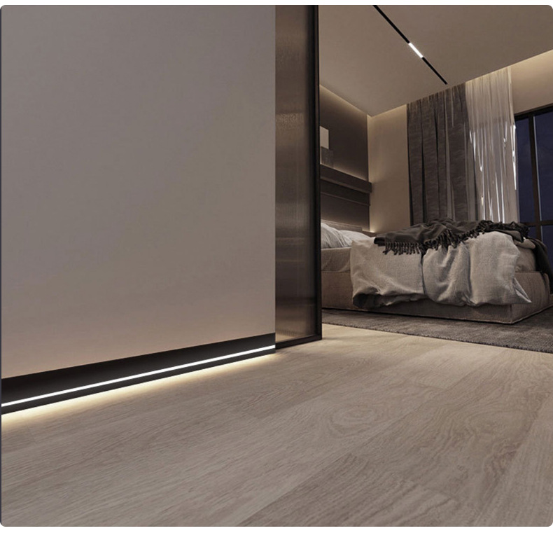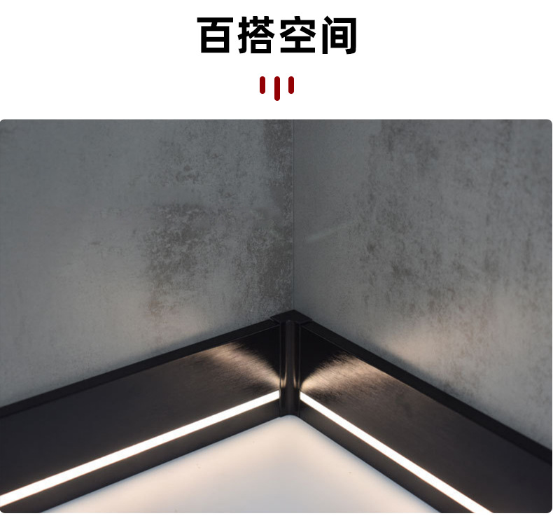 LED 램프 슬롯이있는 빛나는 알루미늄 합금 스커트 라인 금속 피트 앵커 X20 이있는 오픈 스테인레스 스틸 코너 라인 램프스토어 가기