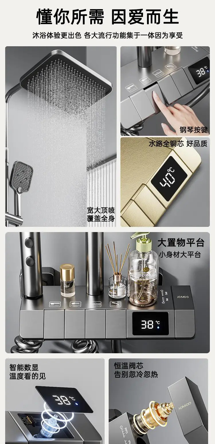 IX. 목가적 인 일정한 온도 샤워 피아노 키 4 단 샤워 세트 가정용 디지털 디스플레이 비 압축 스프레이 건 그레이 모든 구리스토어 가기