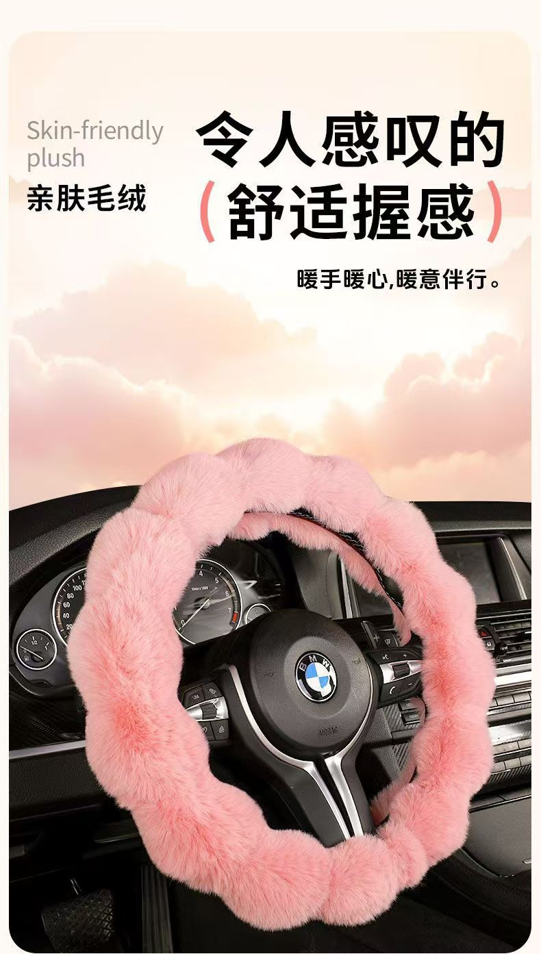 자동차 스티어링 휠 커버 여신 하이 엔드 겨울 귀여운 따뜻한 버블 벨벳 미끄럼 방지 자동차 핸들 커버스토어 가기