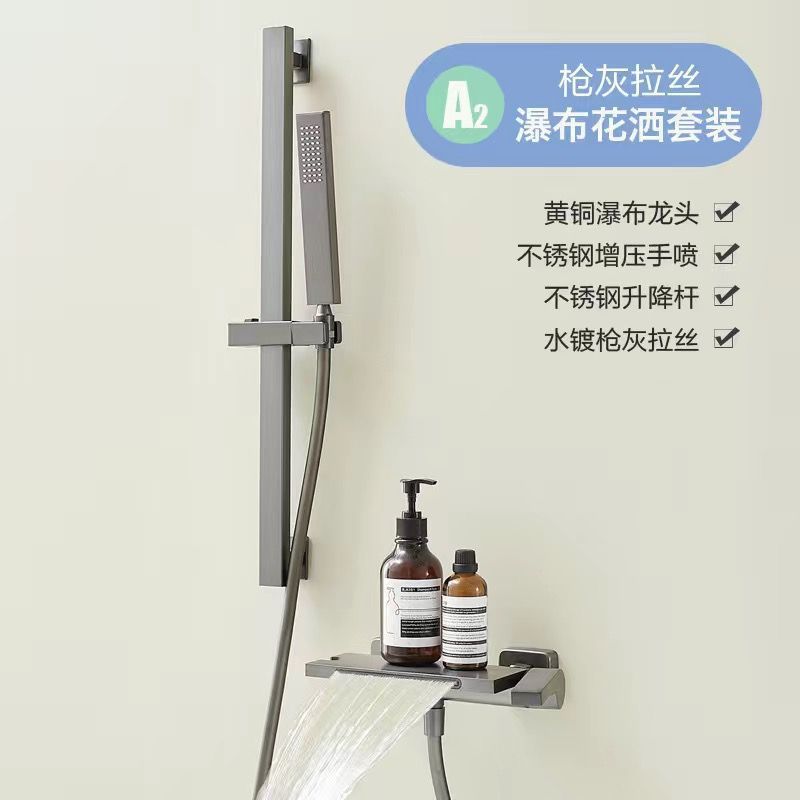 간단한 샤워 샤워 세트 폭포 욕조 수도꼭지 욕실 미니멀리스트 샤워 헤드 모든 구리