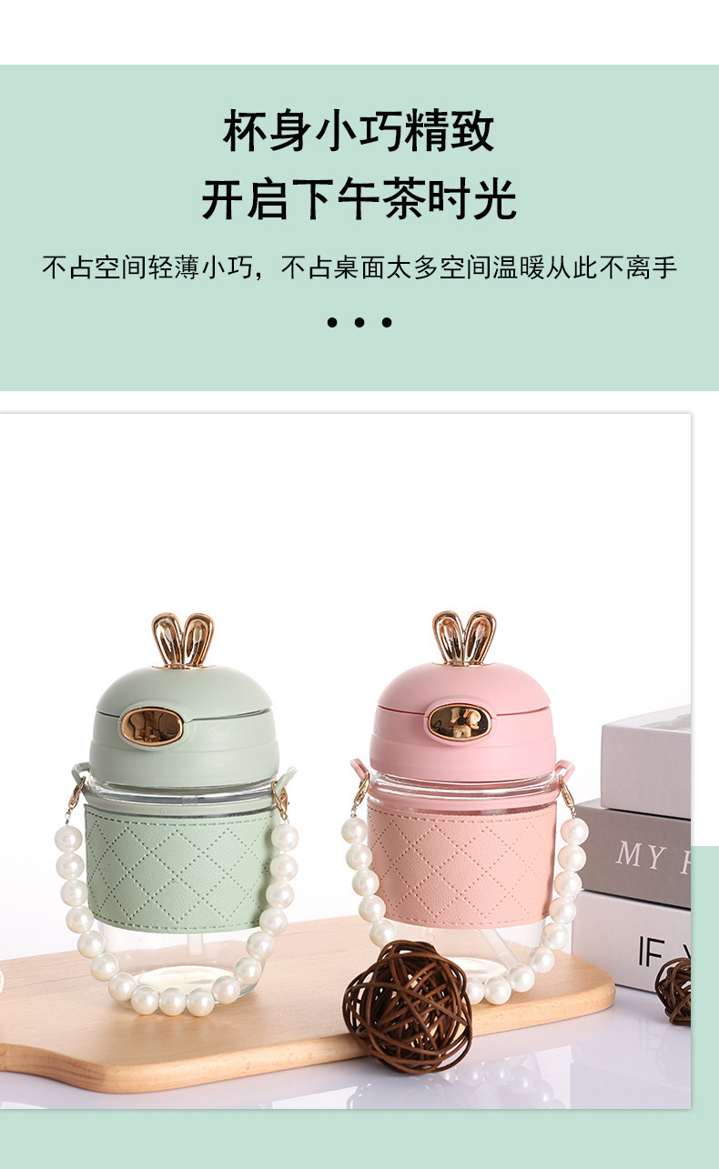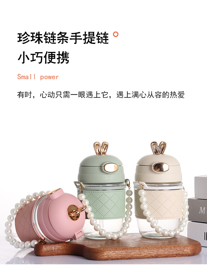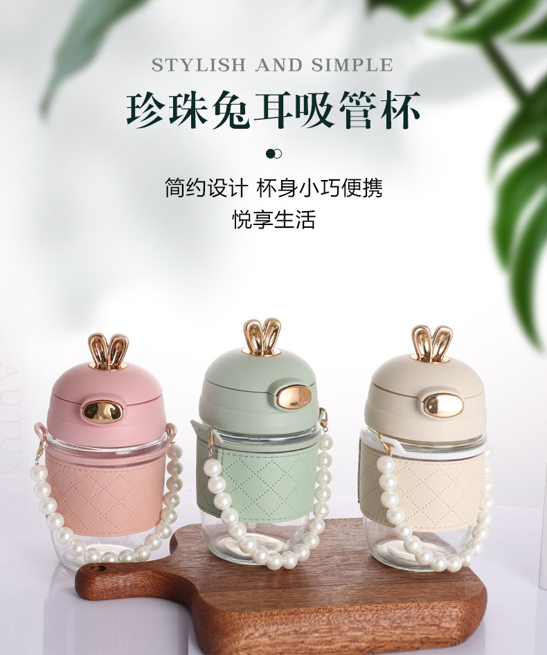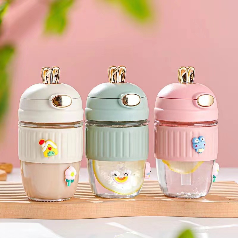 TikTok 인터넷 인기있는 뜨거운 판매 귀여운 토끼 밀짚 유리 귀여운 만화 소녀 휴대용 컵 사무실 커피 음료