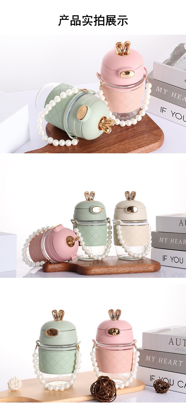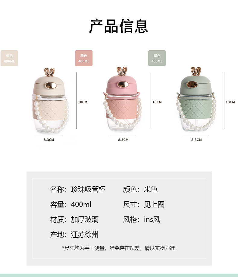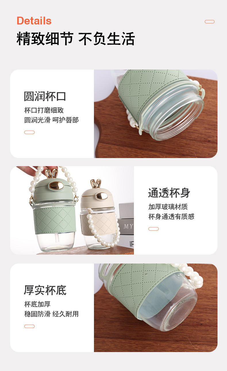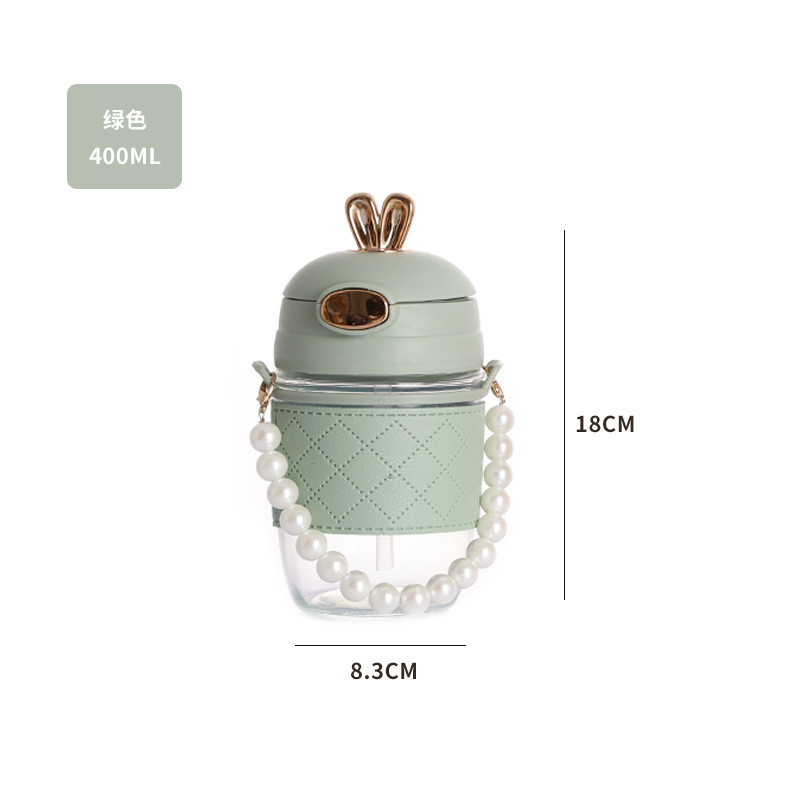 TikTok 인터넷 인기있는 뜨거운 판매 귀여운 토끼 밀짚 유리 귀여운 만화 소녀 휴대용 컵 사무실 커피 음료