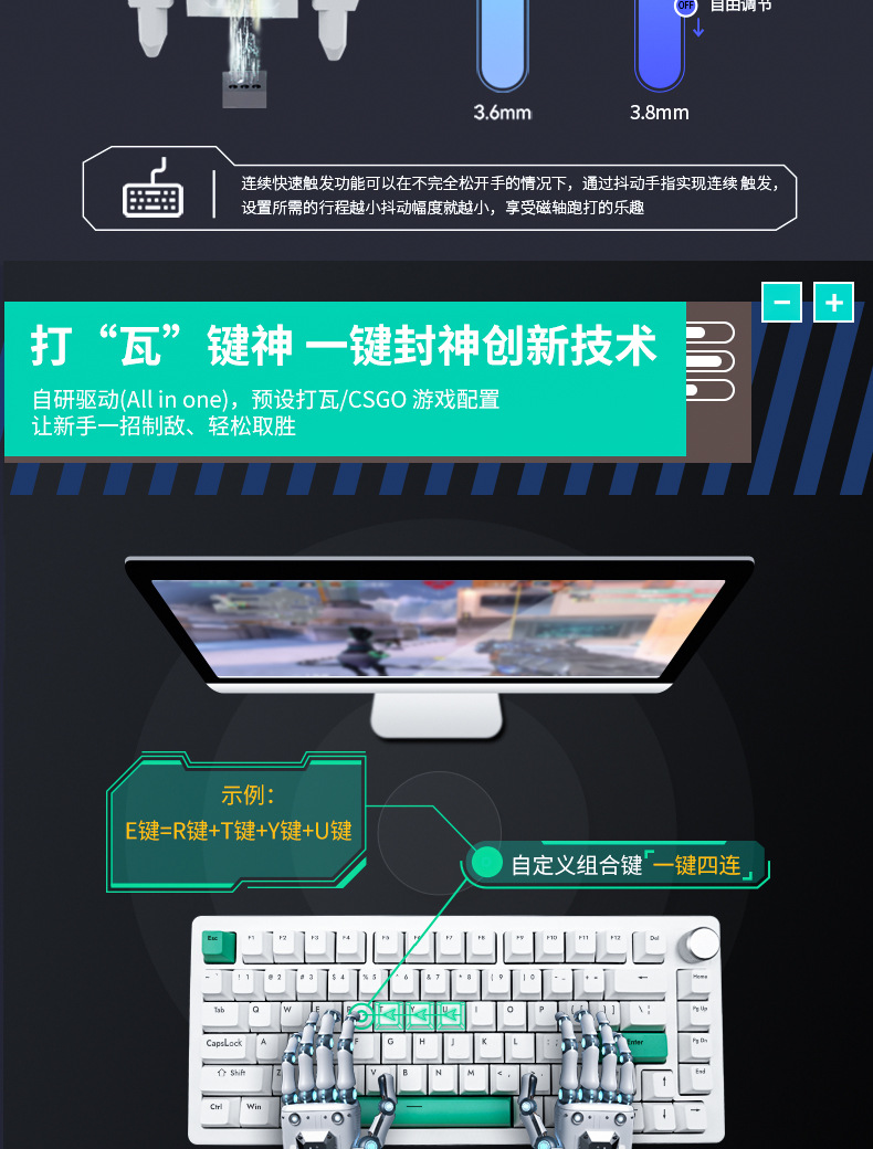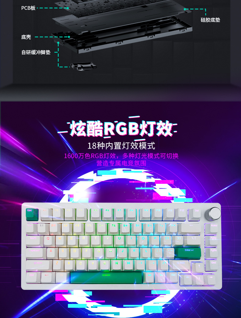 프리랜서 Z75 자기 축 기계 키보드 0 데드 존 핫 플러그 RGB 게임 0.01mm 주파수 전자 경쟁 키패드