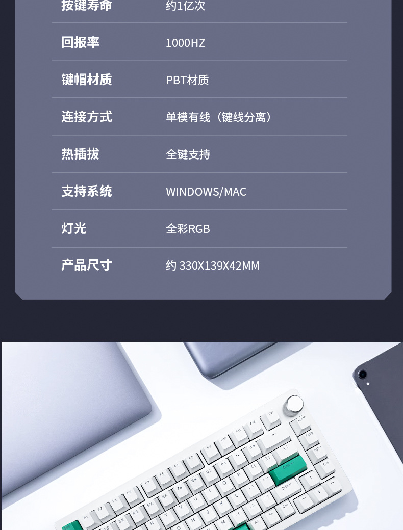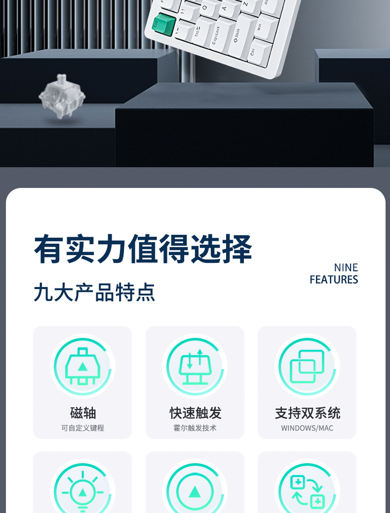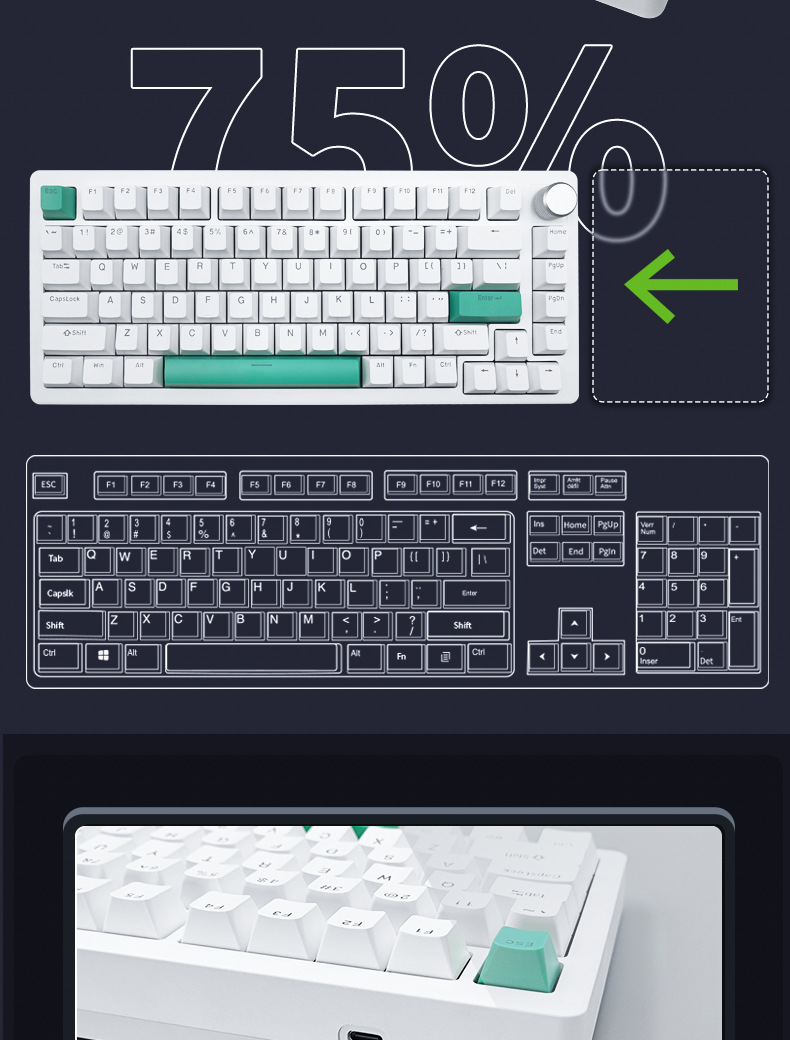 • Z75 흰색 PBT 키캡 버전 자기 샤프트