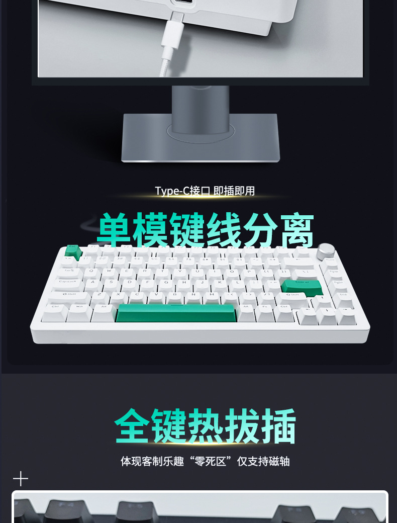 • Z75 검정색 PBT 키캡 버전 자기 샤프트