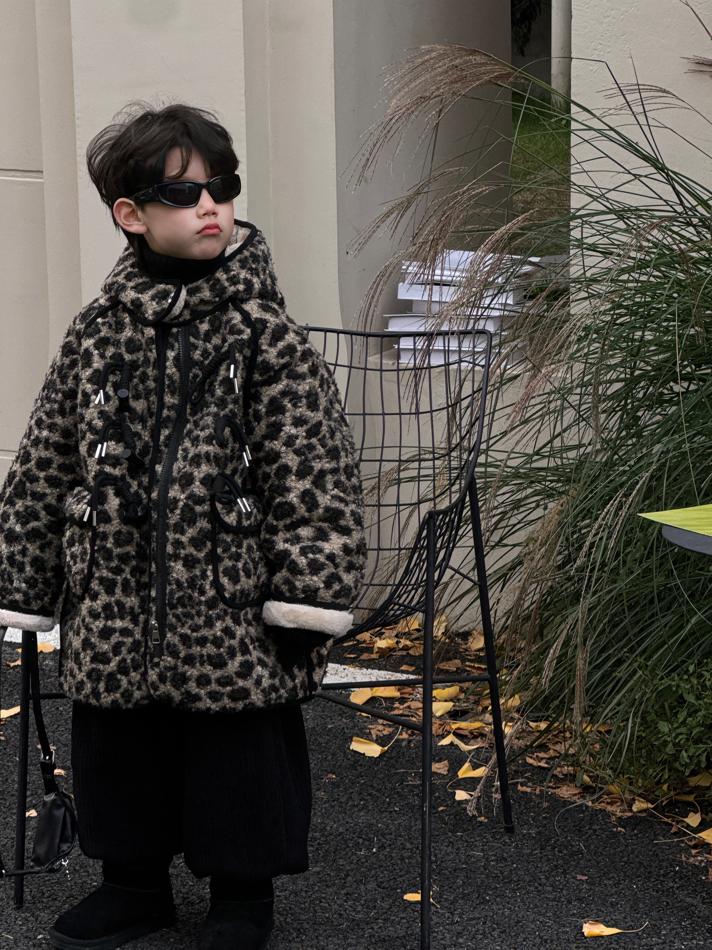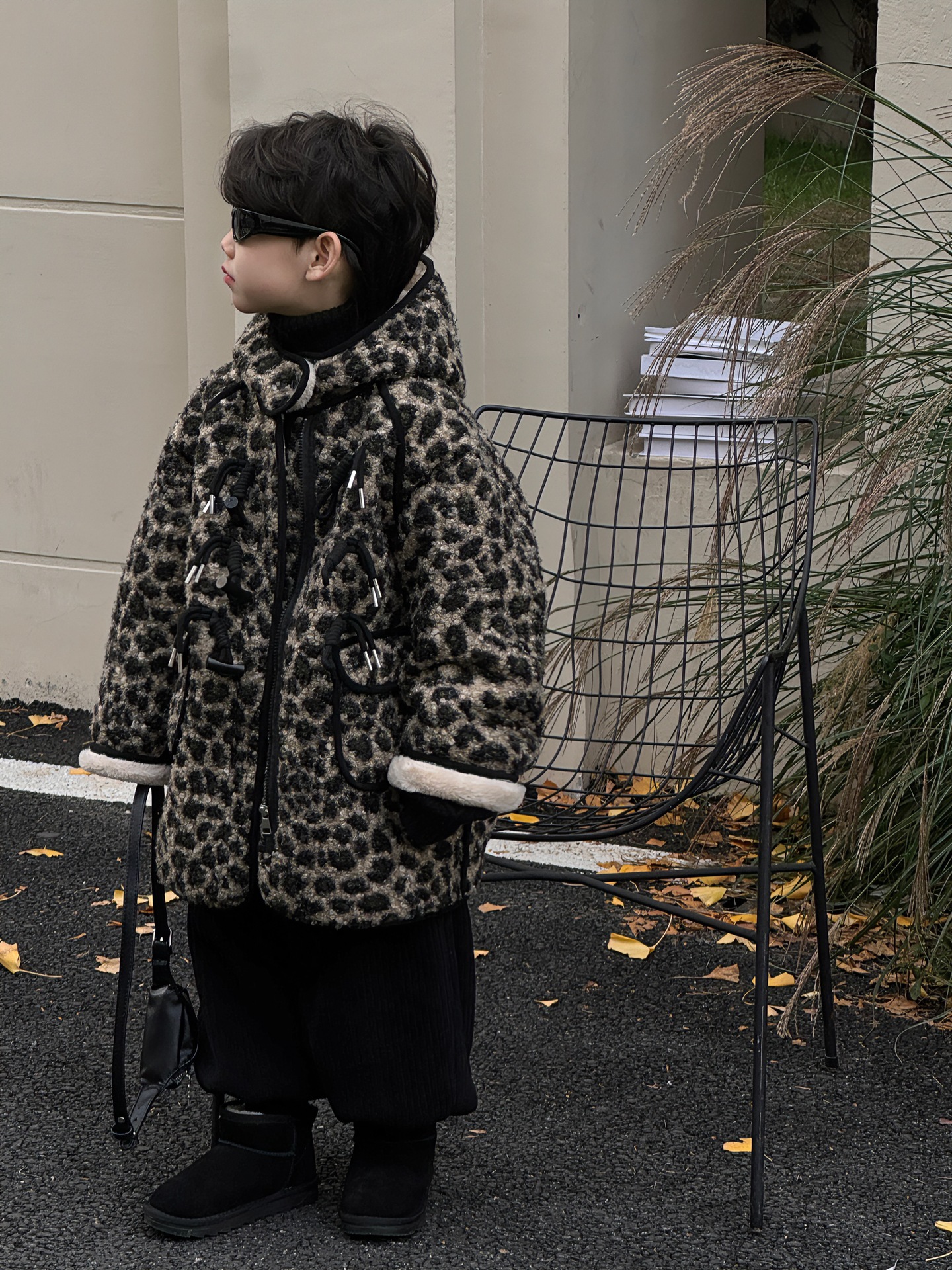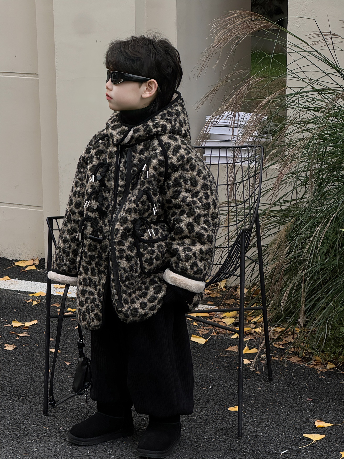 Tairu 2024 겨울 새로운 한국 스타일 어린이 서양 레오파드 무늬 두꺼운 양가죽 후드 재킷 소년 최고의 트렌디스토어 가기