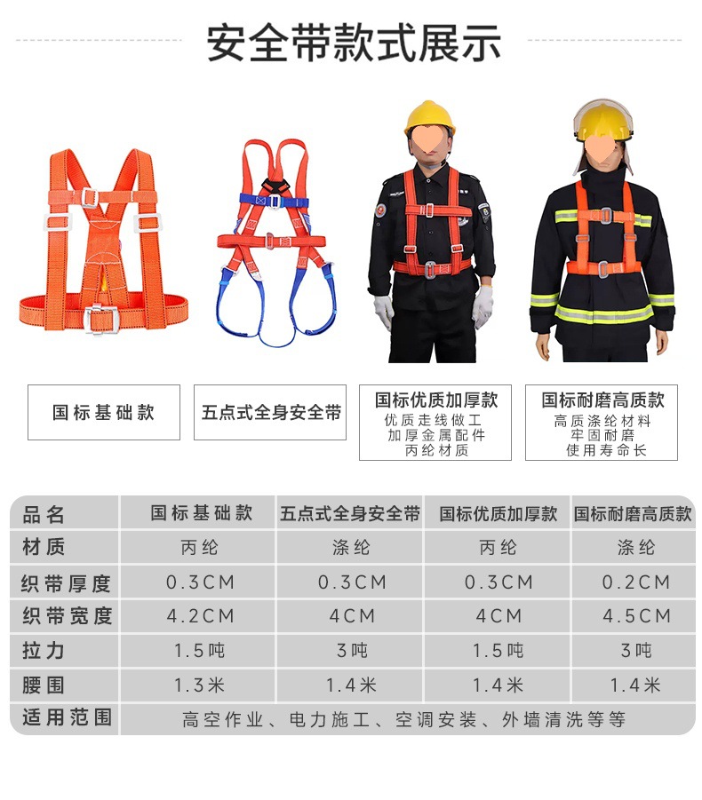 • 5점 전신 안전벨트 + 이중 로프 2m 개 + 대형 후크 2개