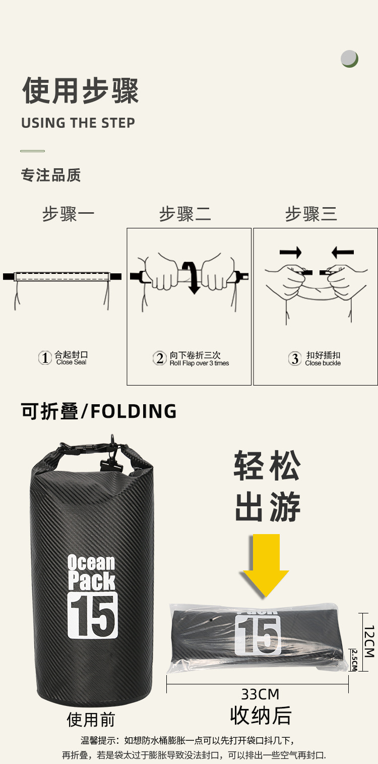 탄소 섬유 방수 가방 버킷 가방 방수 가방 해변 표류 수영 가방 야외 배낭 경량 가방