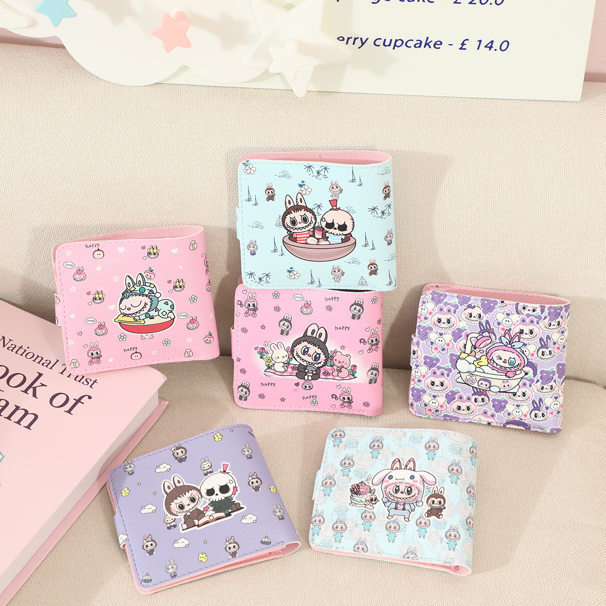 라부부 짧은 지갑 동전 지갑 학생 작은 지갑 카드 가방 운반-작은 돈 가방 라부부 만화 주변