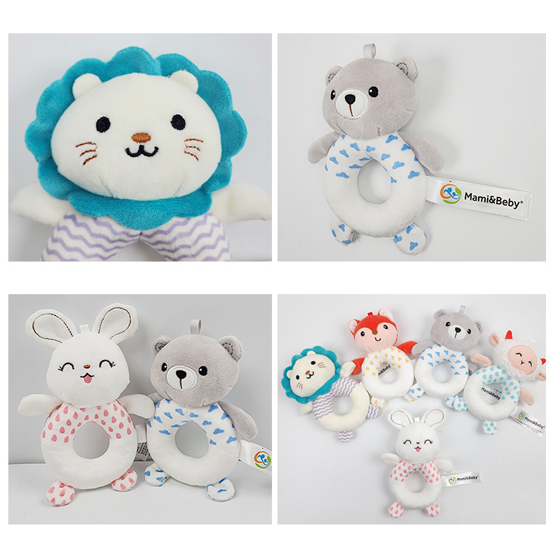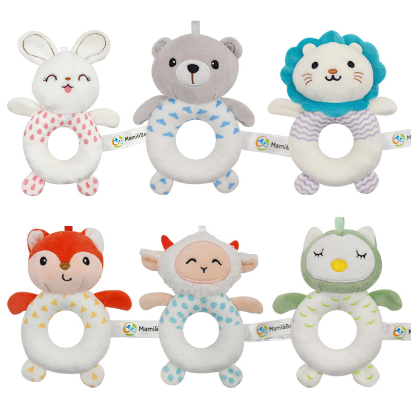 Mamibeby 만화 동물 손을 잡고 스틱 아기 장난감 울리는 종이 BB 스틱 라운드 핸드 롤 신생아 진정 라운드 핸드 롤스토어 가기