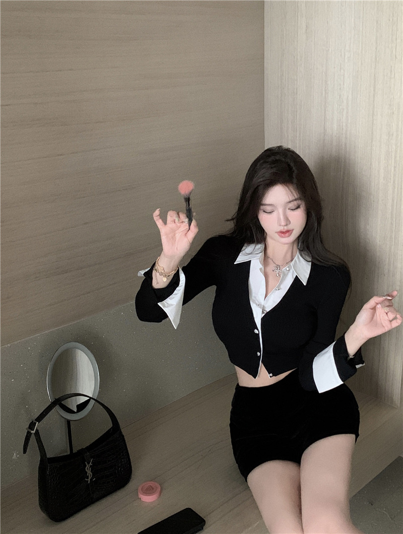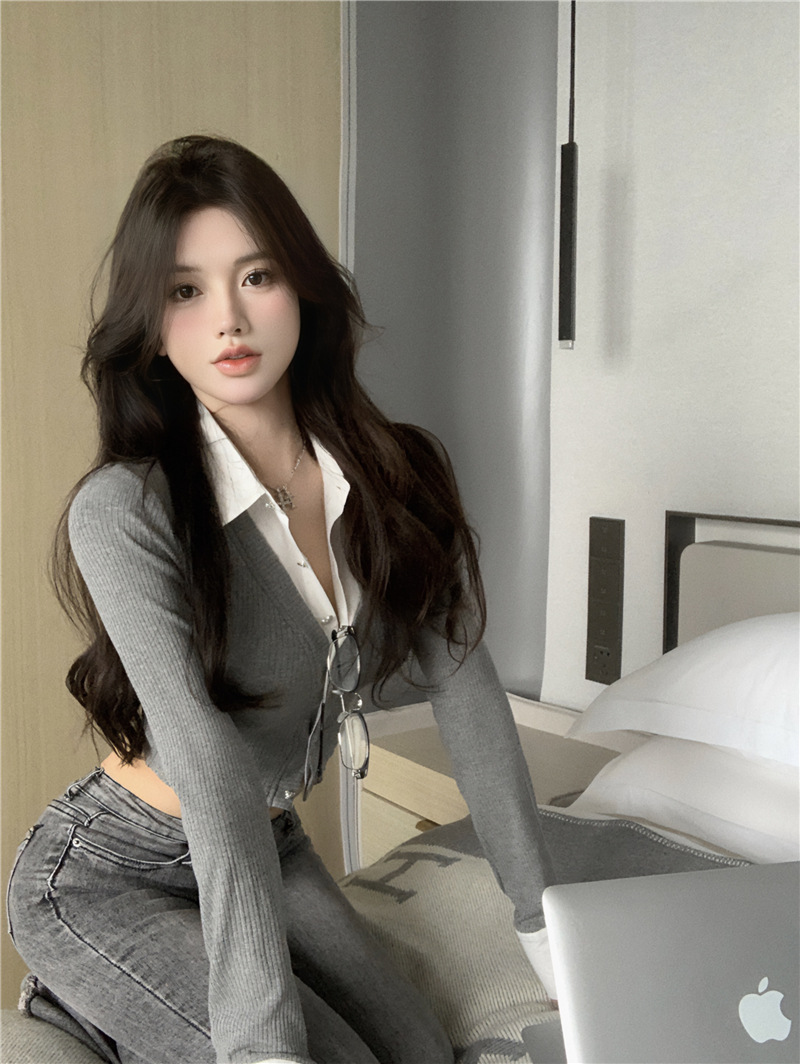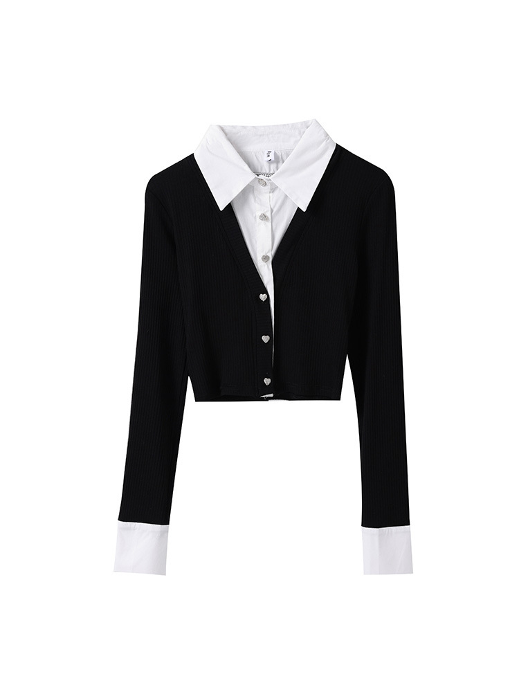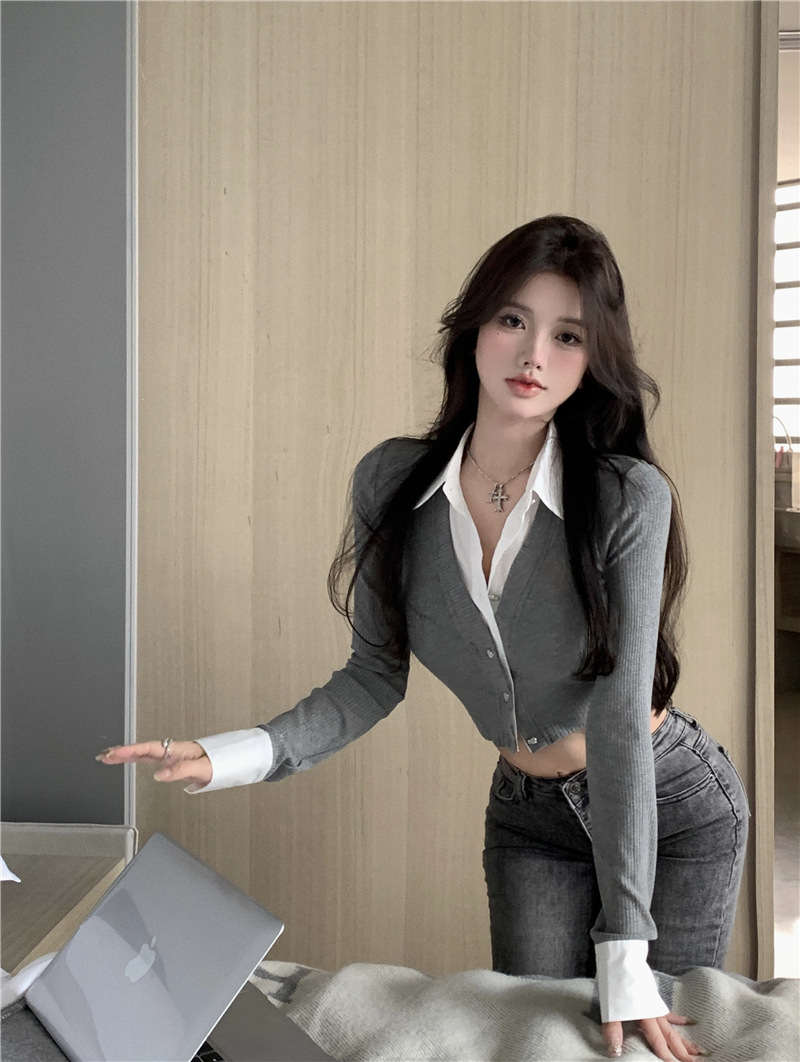 스타 스레드 가짜 투피스 셔츠 여성 디자인 센스 틈새 이른 가을 순수한 달콤한 스타일 스파이스 소녀 섹시한 짧은베이스