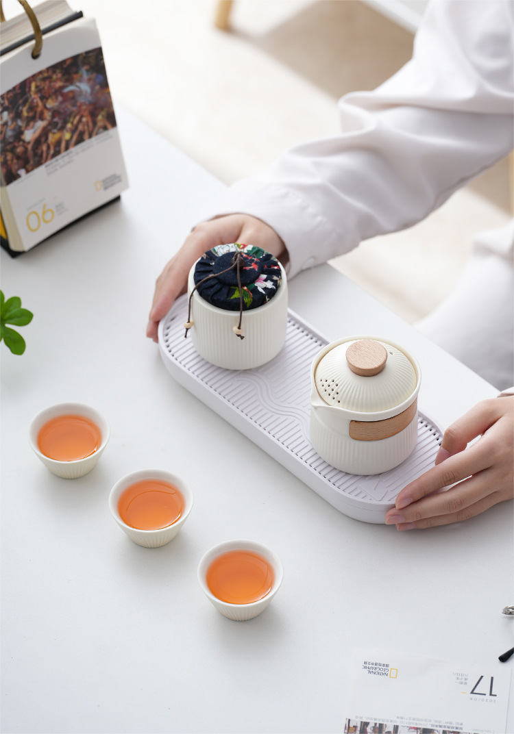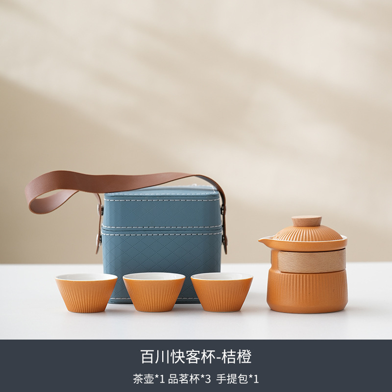 여행 차 세트 작은 세트 휴대용 야외 1 포트 3 컵 세라믹 익스프레스 컵 회사 선물 로고스토어 가기