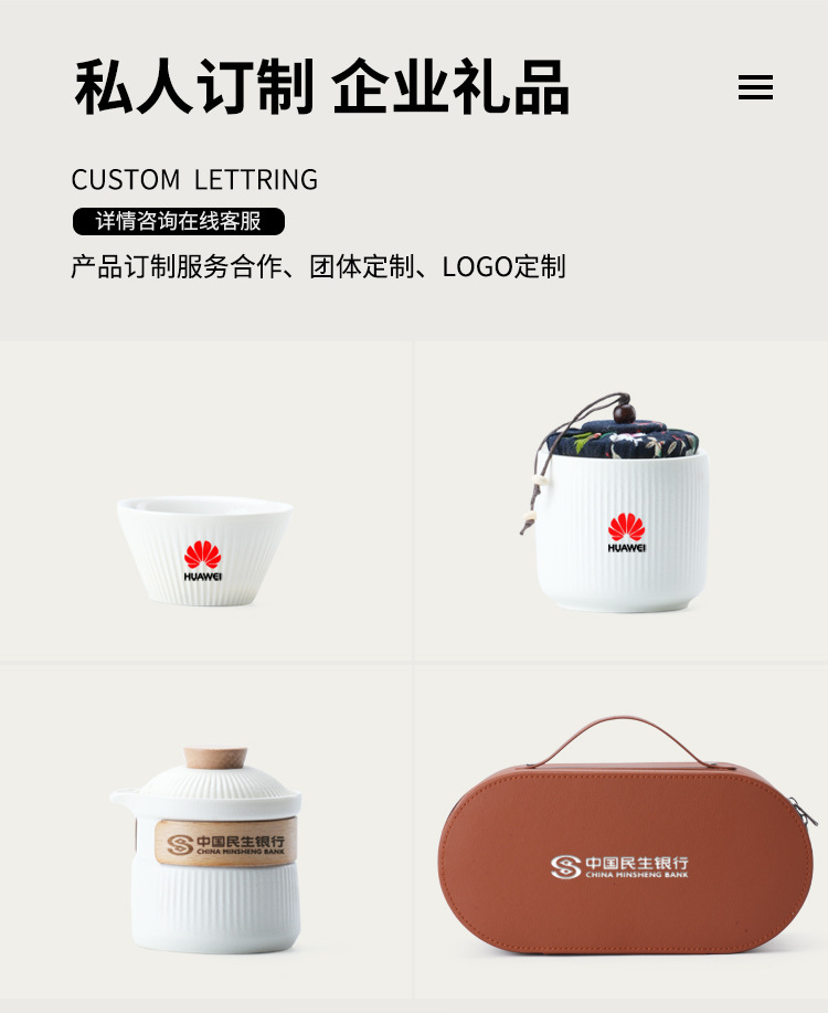 旅行茶具小套装便携式户外一壶三杯陶瓷快客杯公司送礼品logo