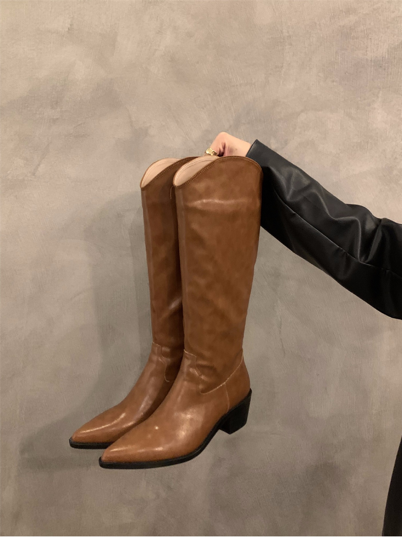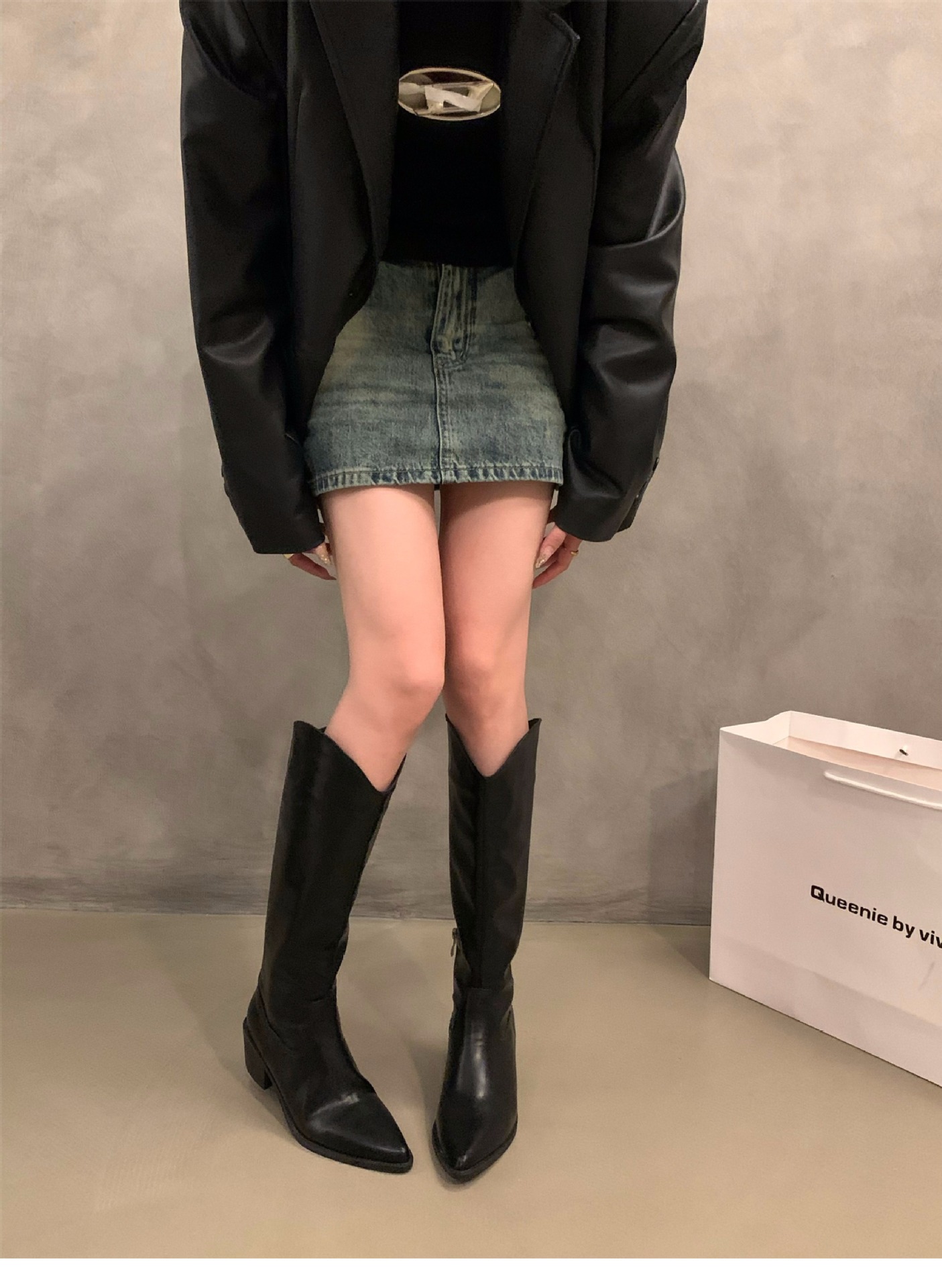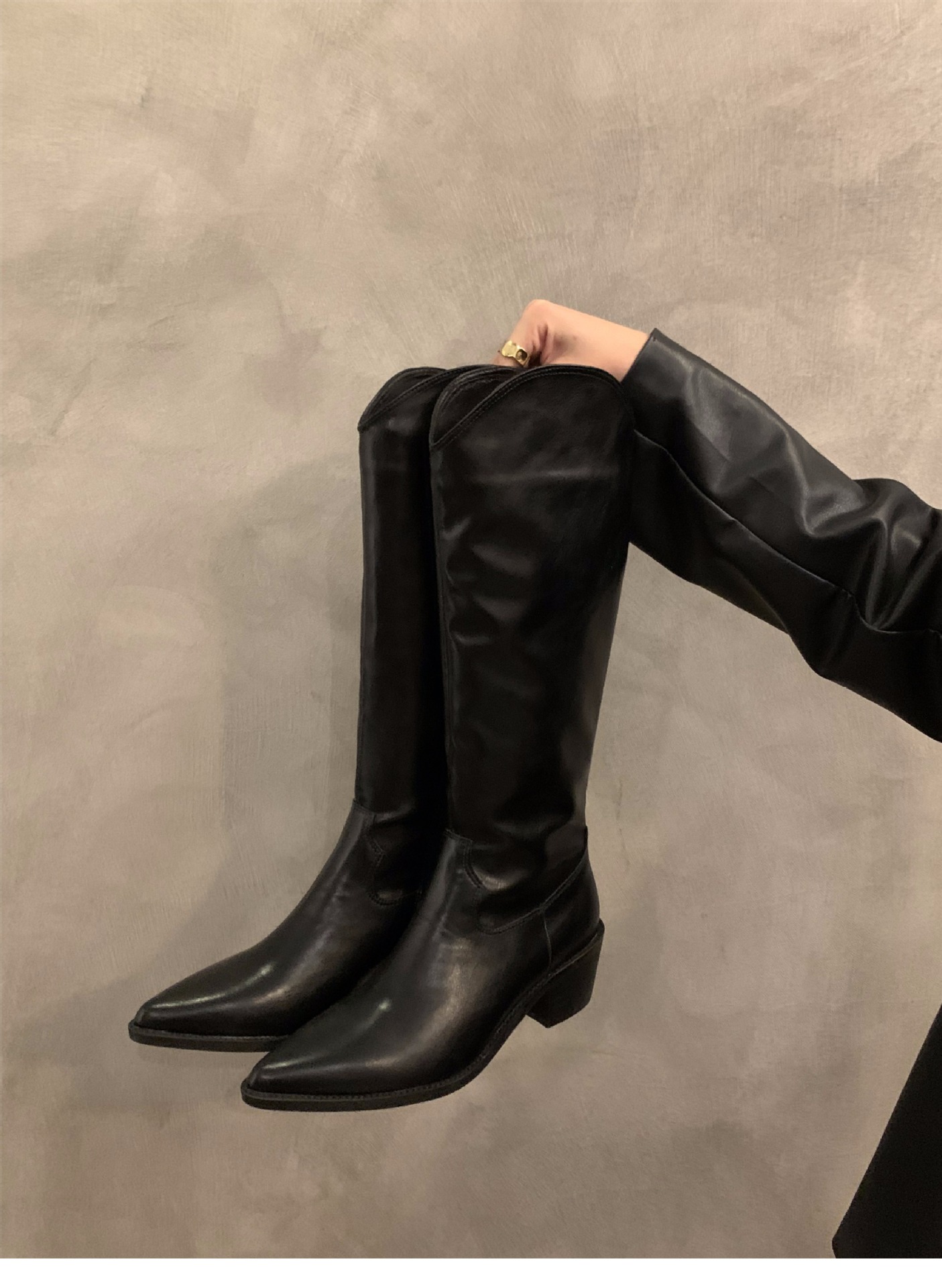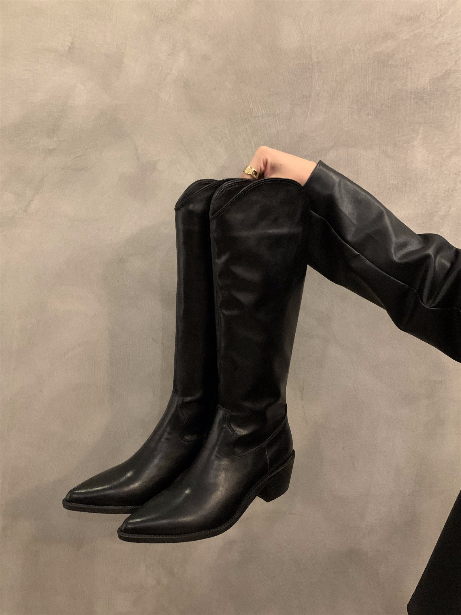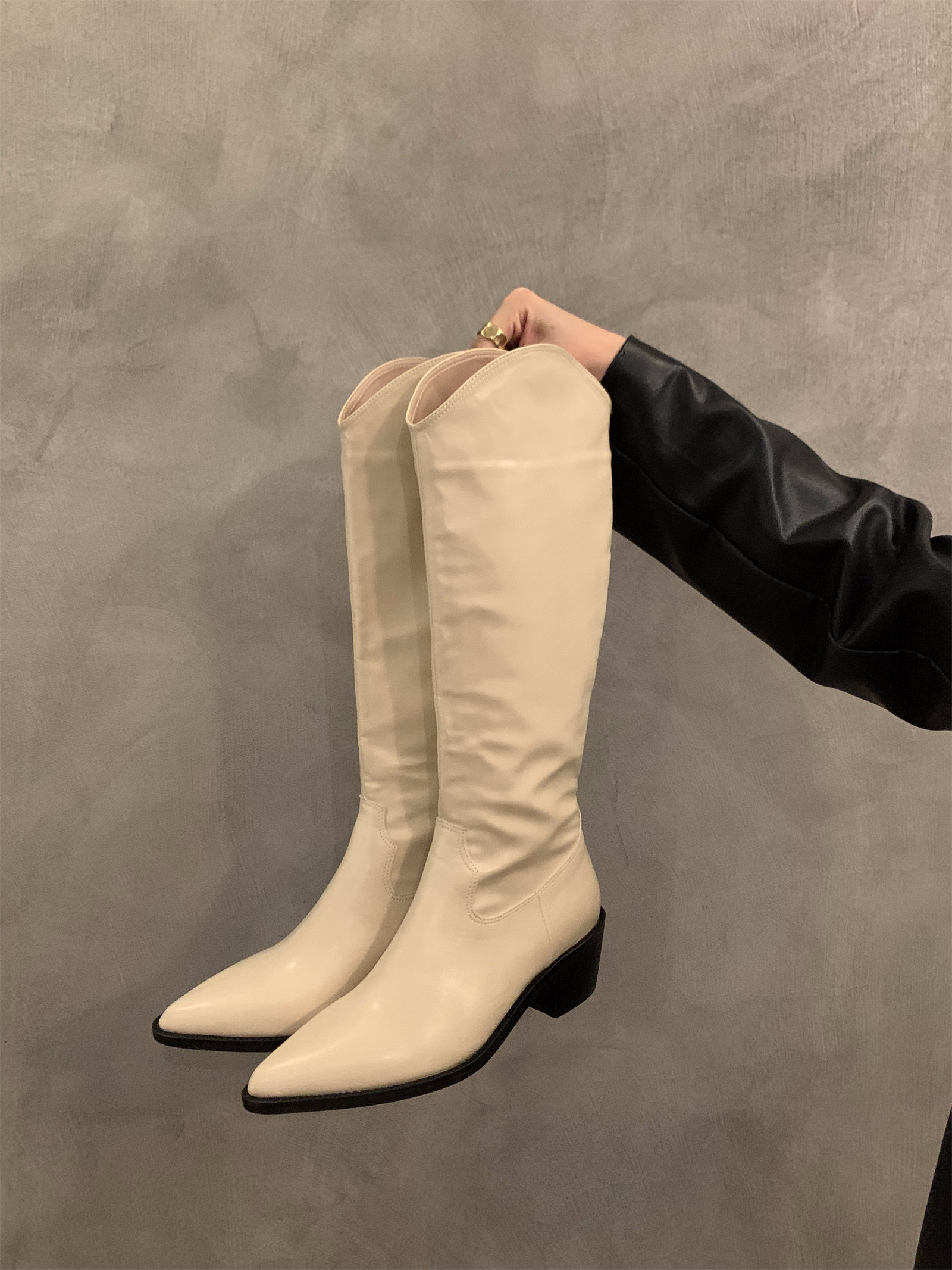 하이힐 포인티드 V-입 얇은 롱 부츠 여성 신발 2024 가을 겨울 웨스턴 데님 라이더 부츠 빈티지 롱 부츠스토어 가기