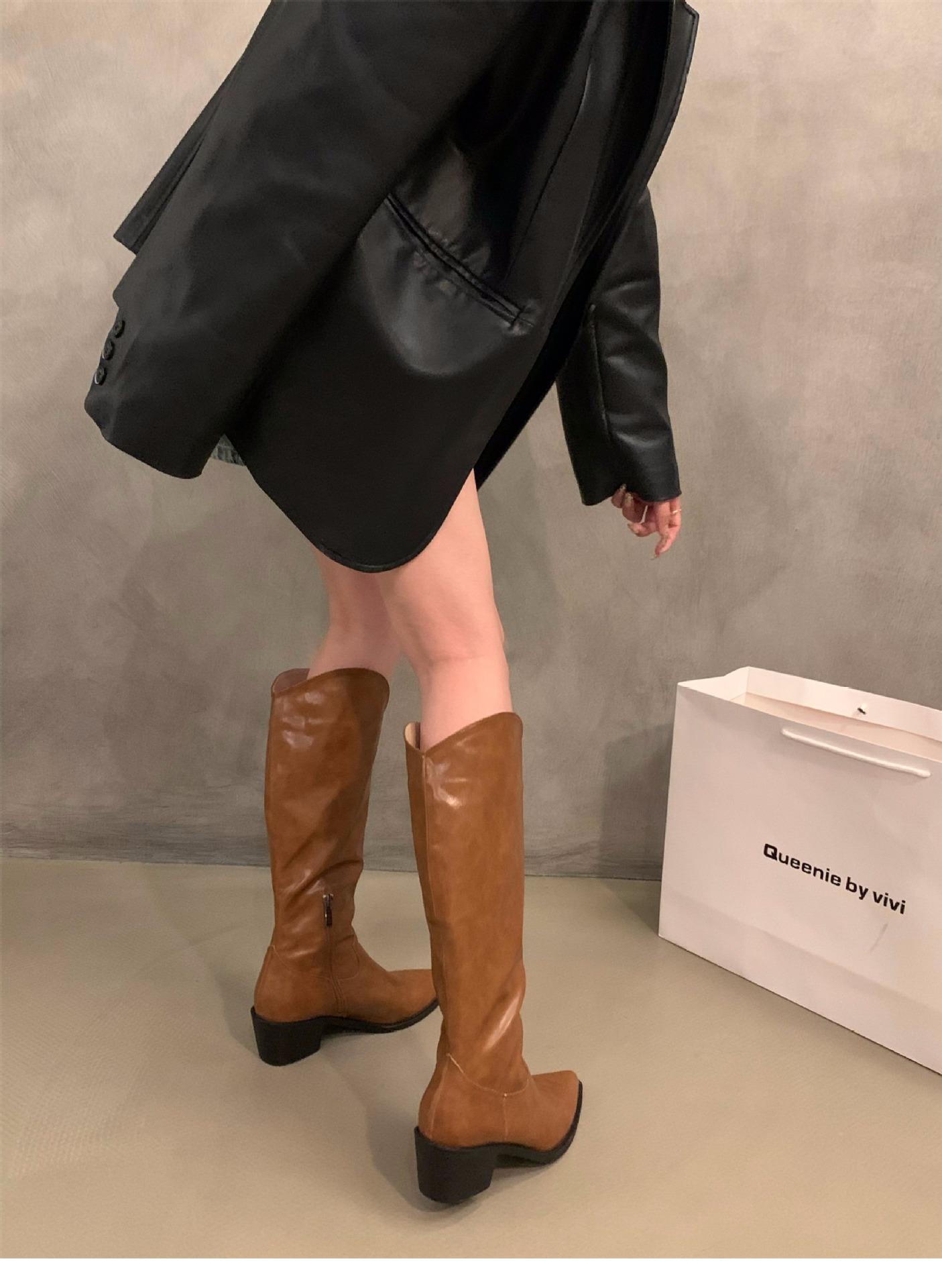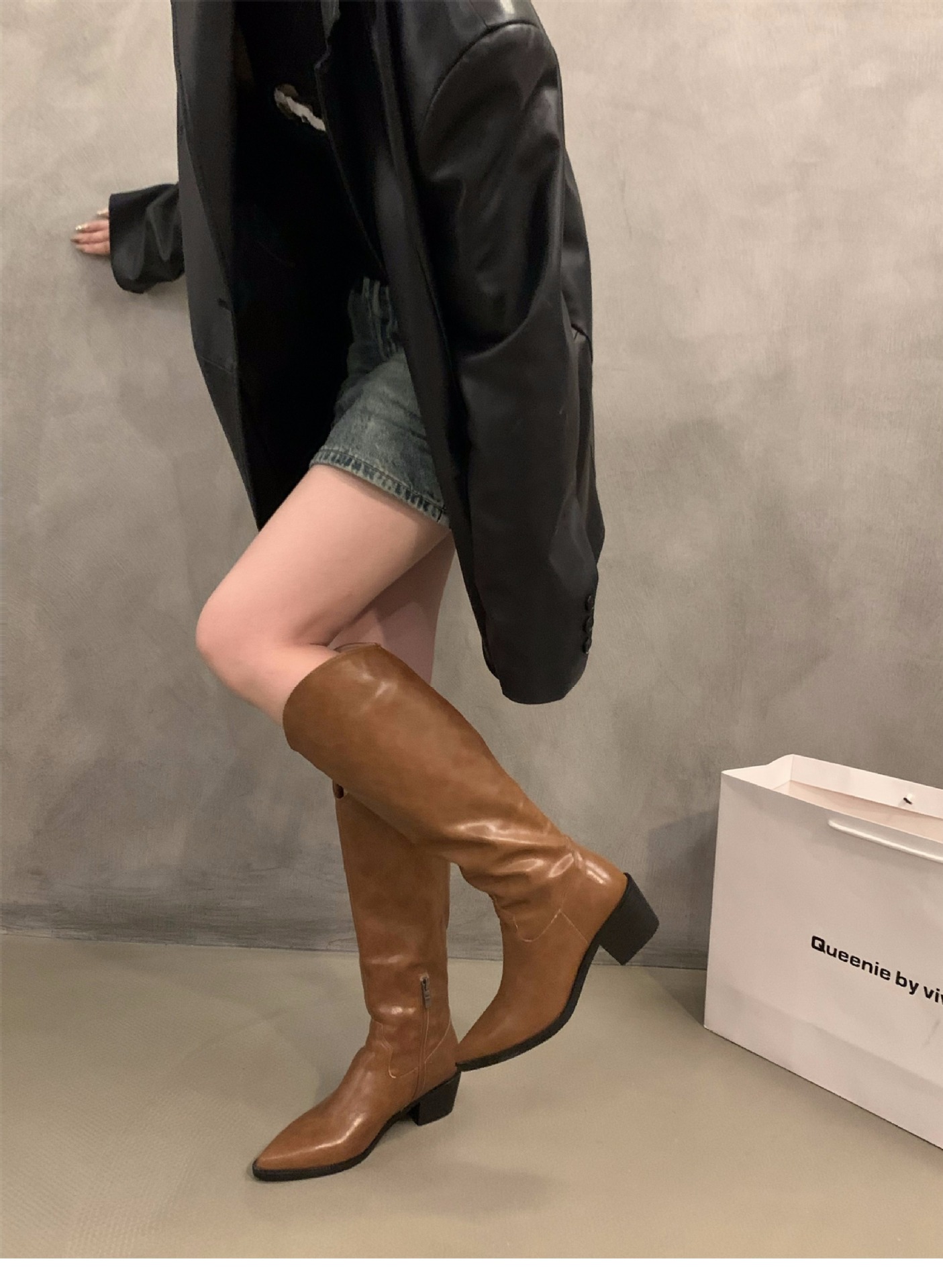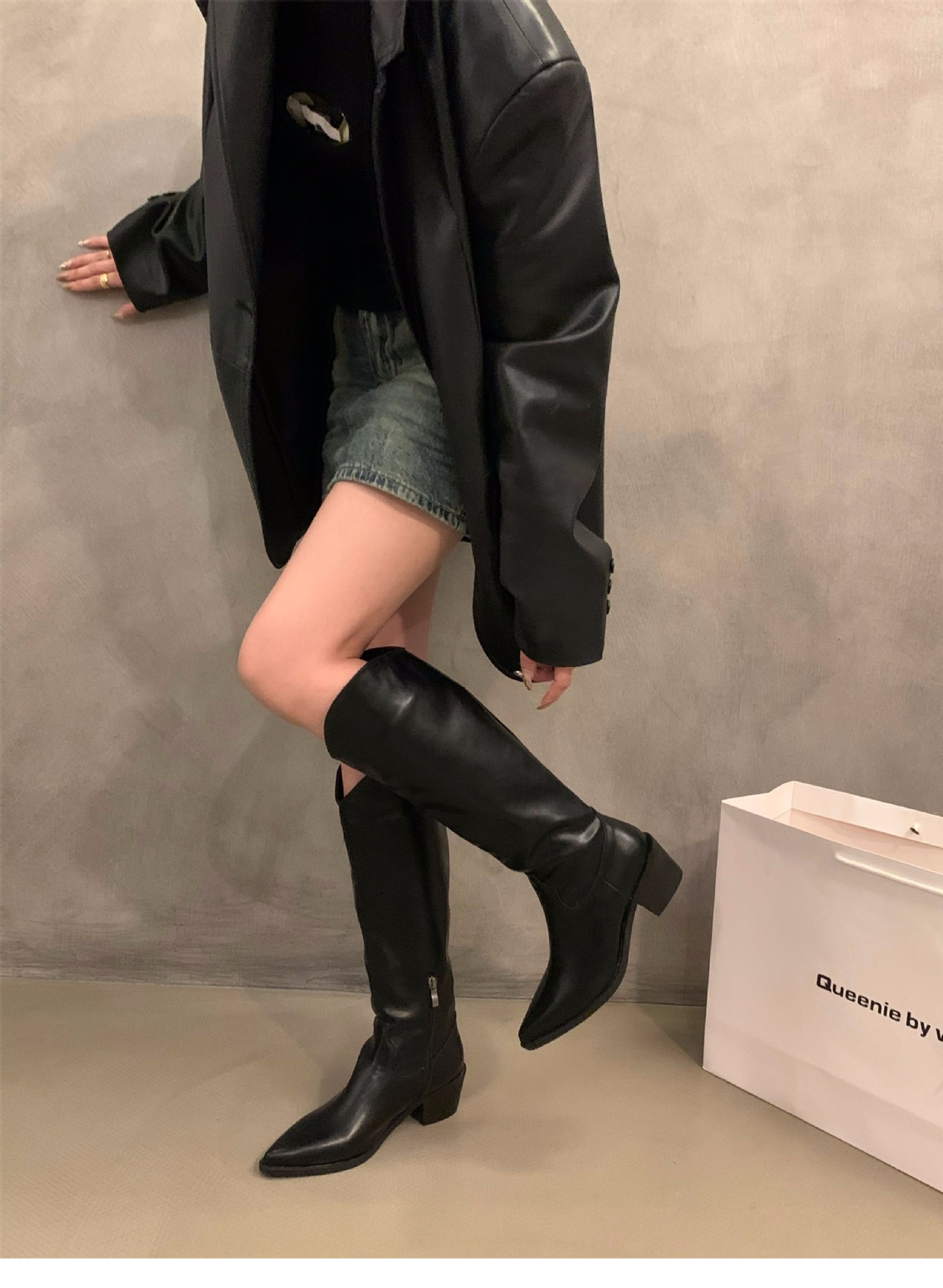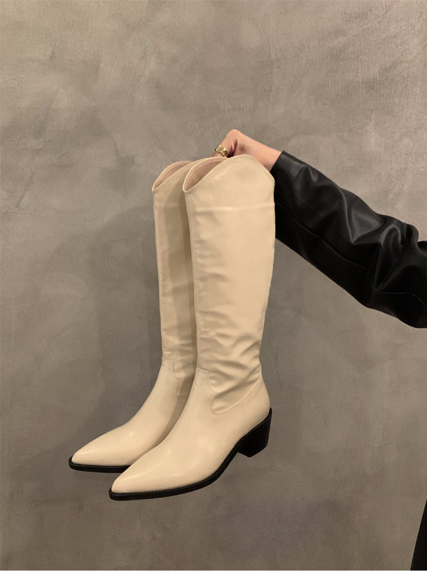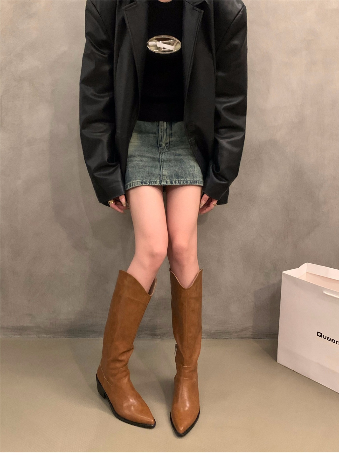 하이힐 포인티드 V-입 얇은 롱 부츠 여성 신발 2024 가을 겨울 웨스턴 데님 라이더 부츠 빈티지 롱 부츠스토어 가기