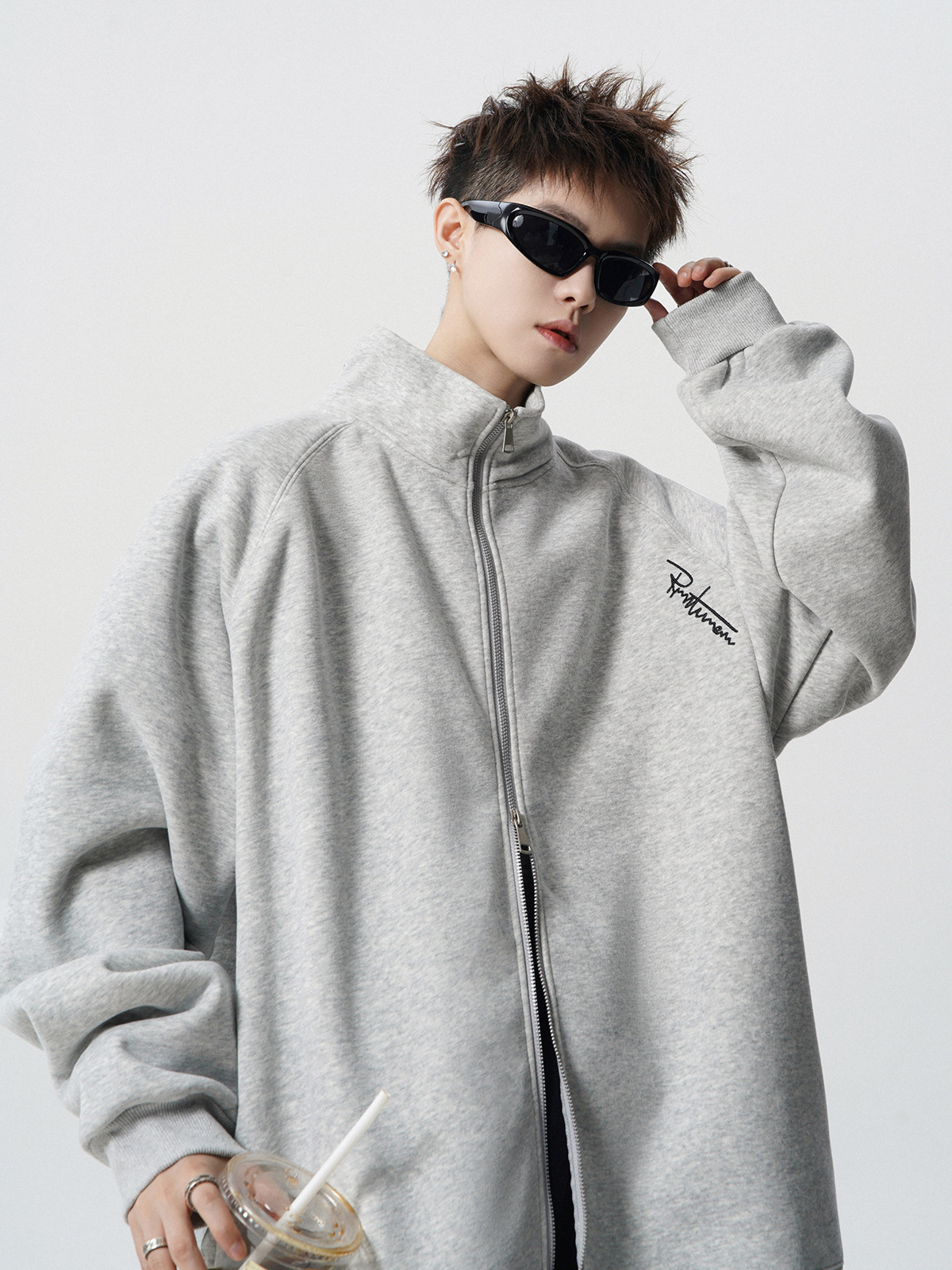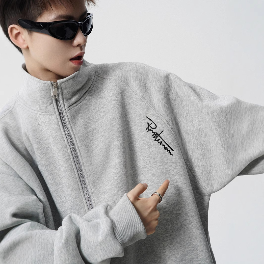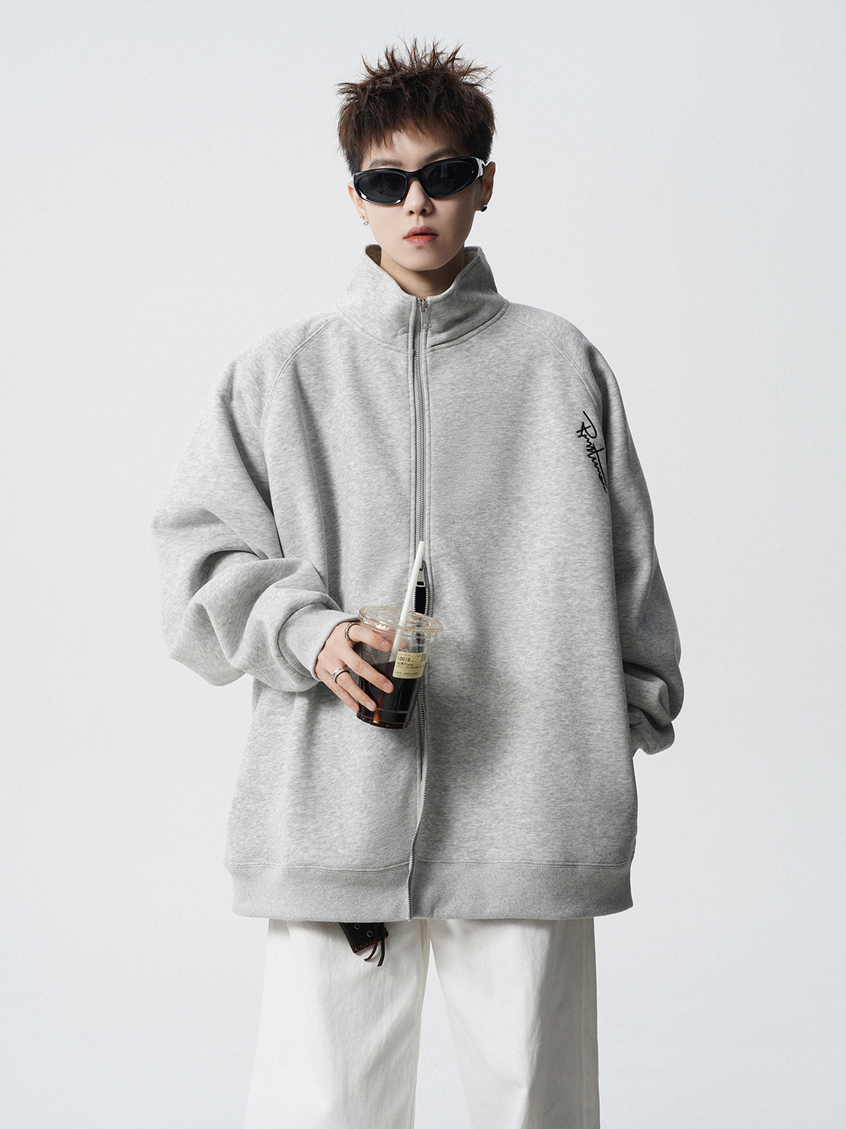 미국 회색 카디건 스웨터 남자 겨울 전국 패션 자수 기모 커플 코트 빈티지 캐주얼 칼라 재킷스토어 가기