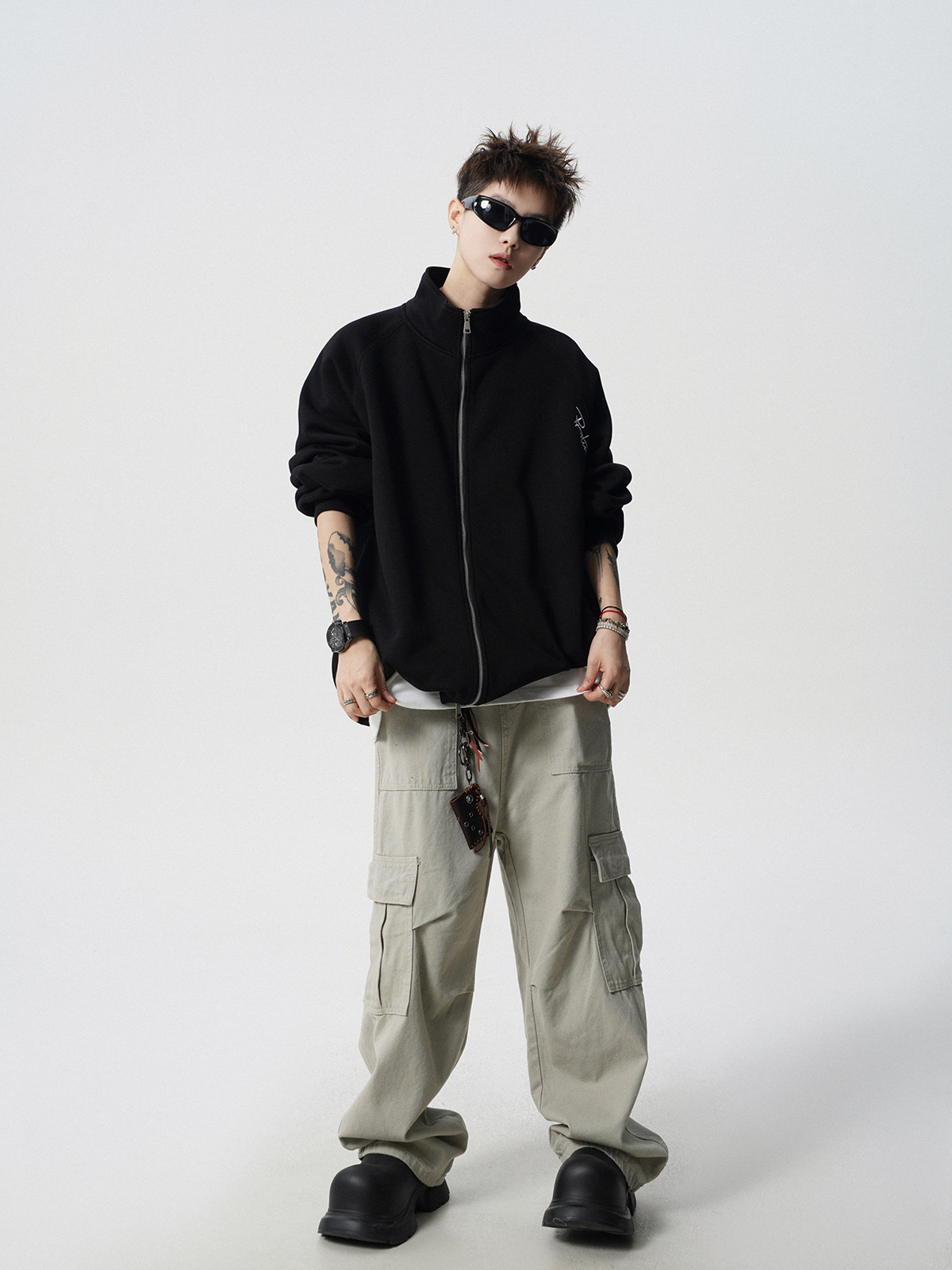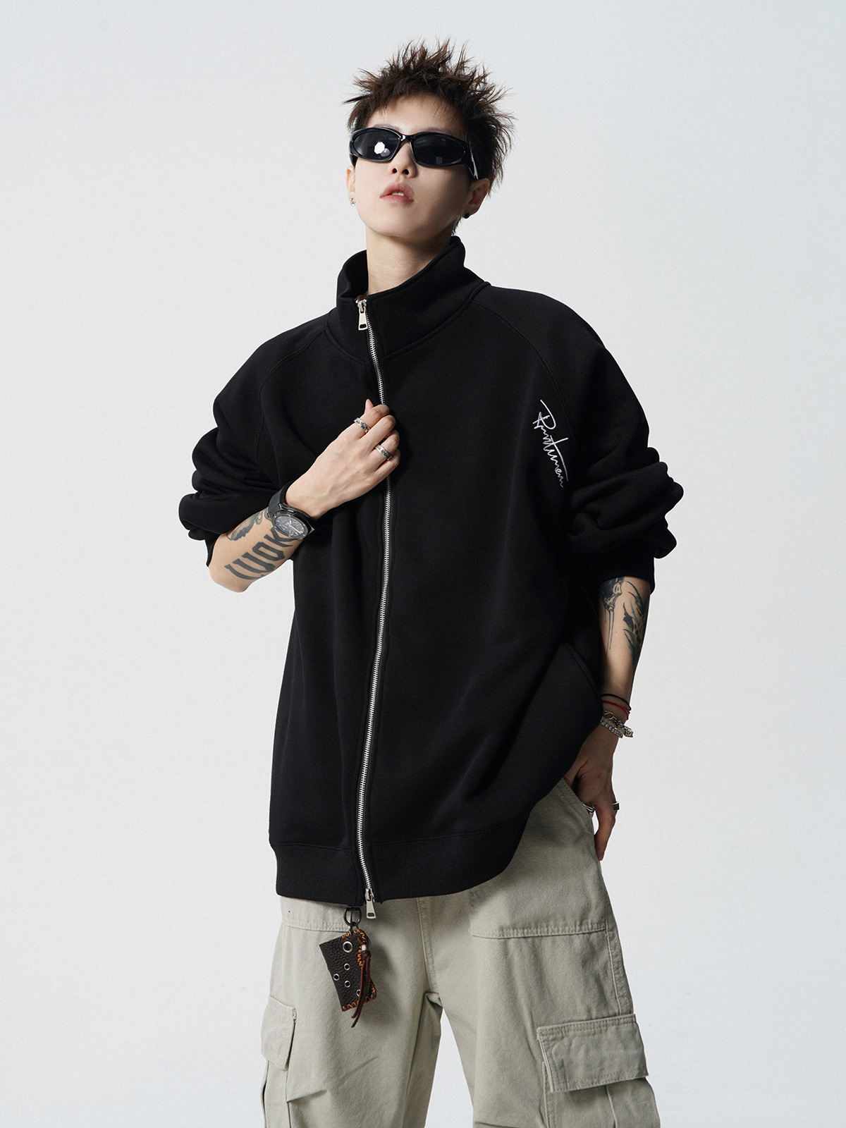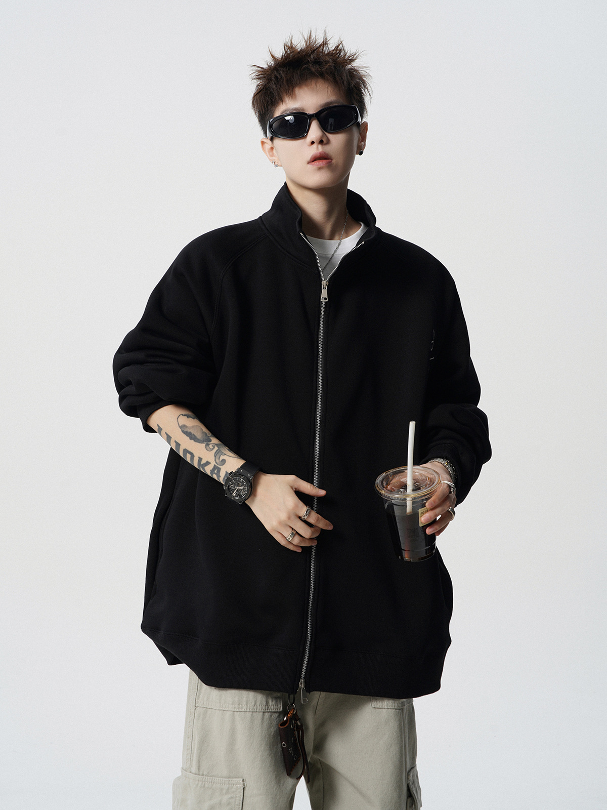 미국 회색 카디건 스웨터 남자 겨울 전국 패션 자수 기모 커플 코트 빈티지 캐주얼 칼라 재킷스토어 가기
