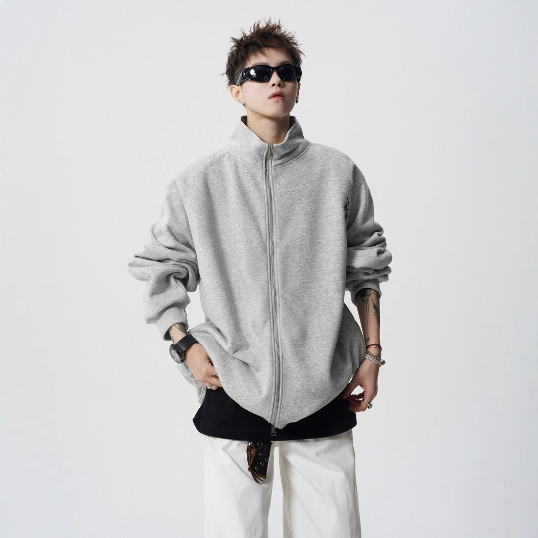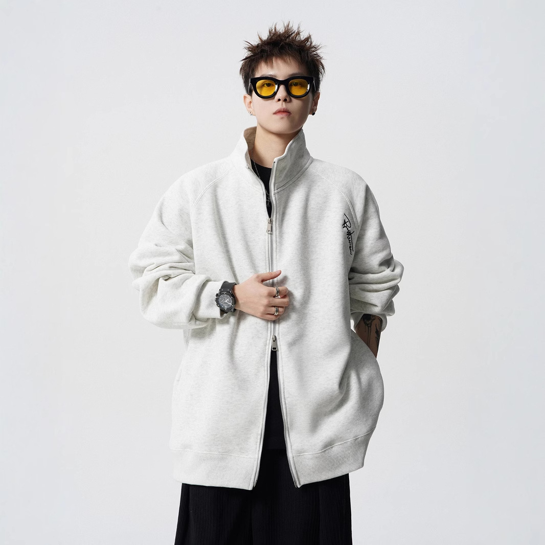 미국 회색 카디건 스웨터 남자 겨울 전국 패션 자수 기모 커플 코트 빈티지 캐주얼 칼라 재킷