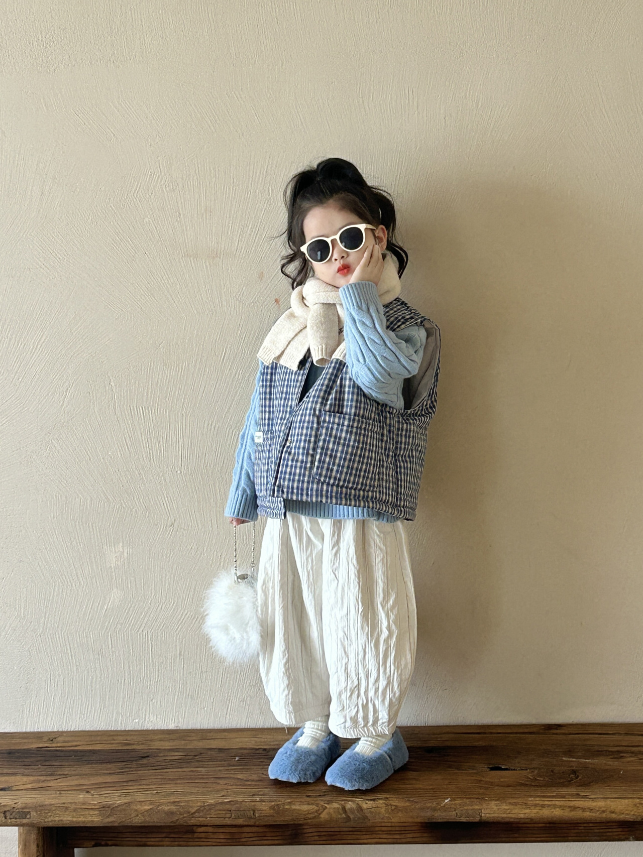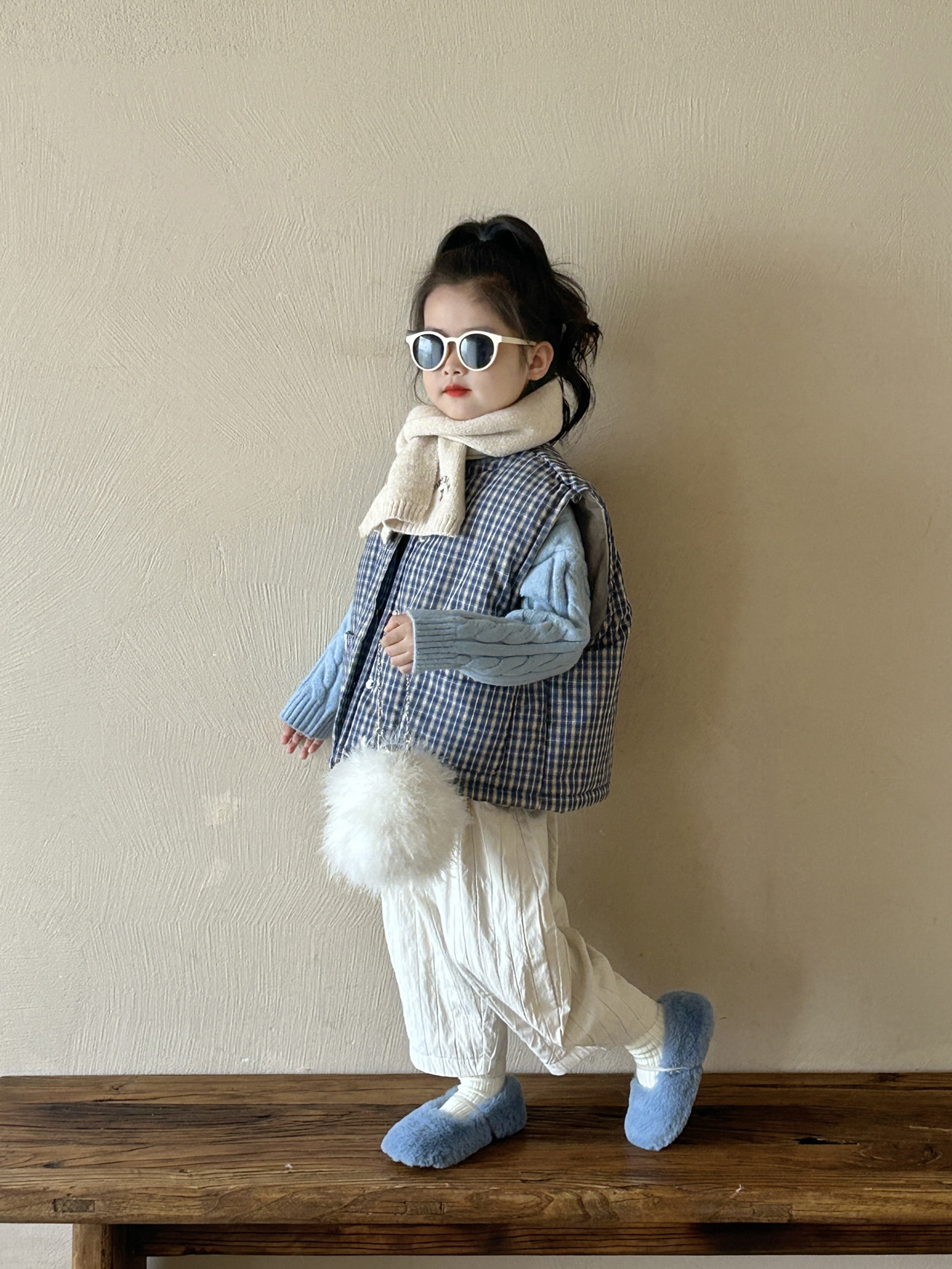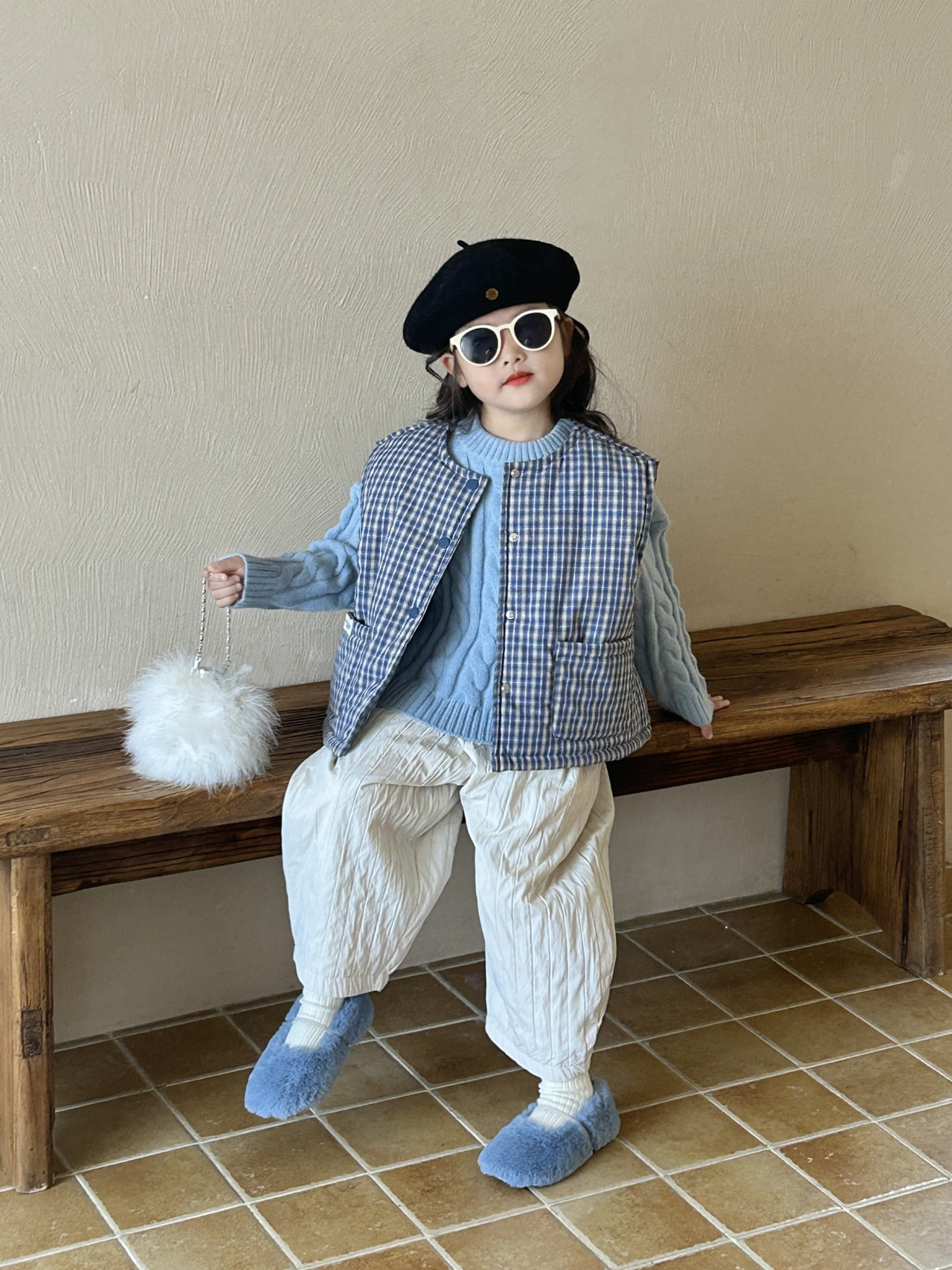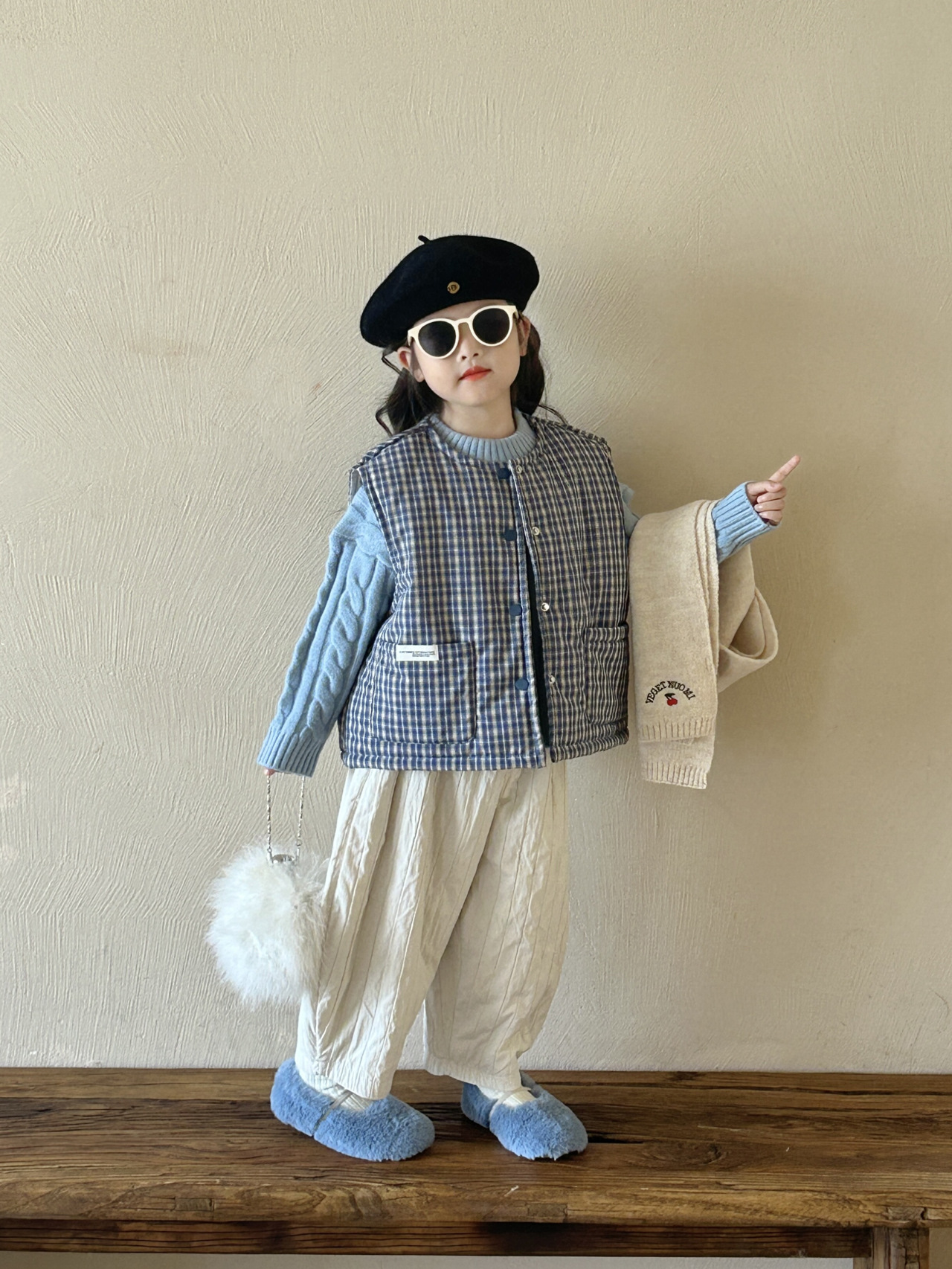 소녀 한국 스타일 면화 조끼 2024 가을 및 겨울 새로운 아동복 어린이 아기 격자 무늬 두꺼운 조끼 탑스토어 가기