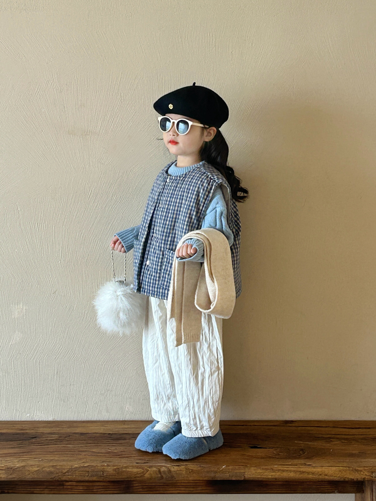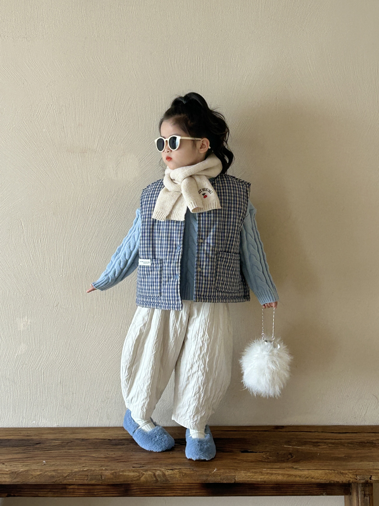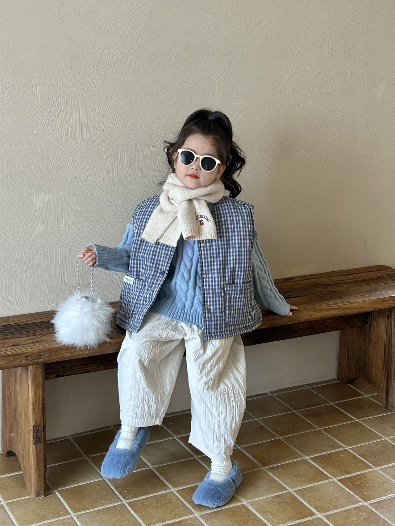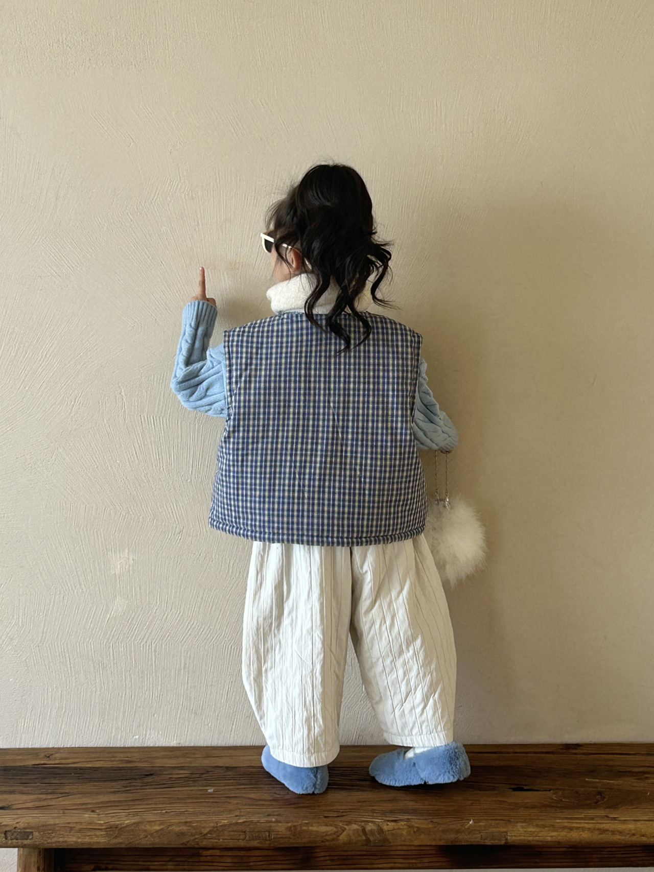 소녀 한국 스타일 면화 조끼 2024 가을 및 겨울 새로운 아동복 어린이 아기 격자 무늬 두꺼운 조끼 탑스토어 가기