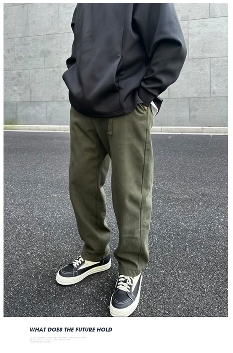 가을과 겨울 무거운 기모 두꺼운 오버볼 남자 캐주얼 와이드 레그 테이퍼 팬츠 올매치 세척 느슨한 스트레이트 팬츠