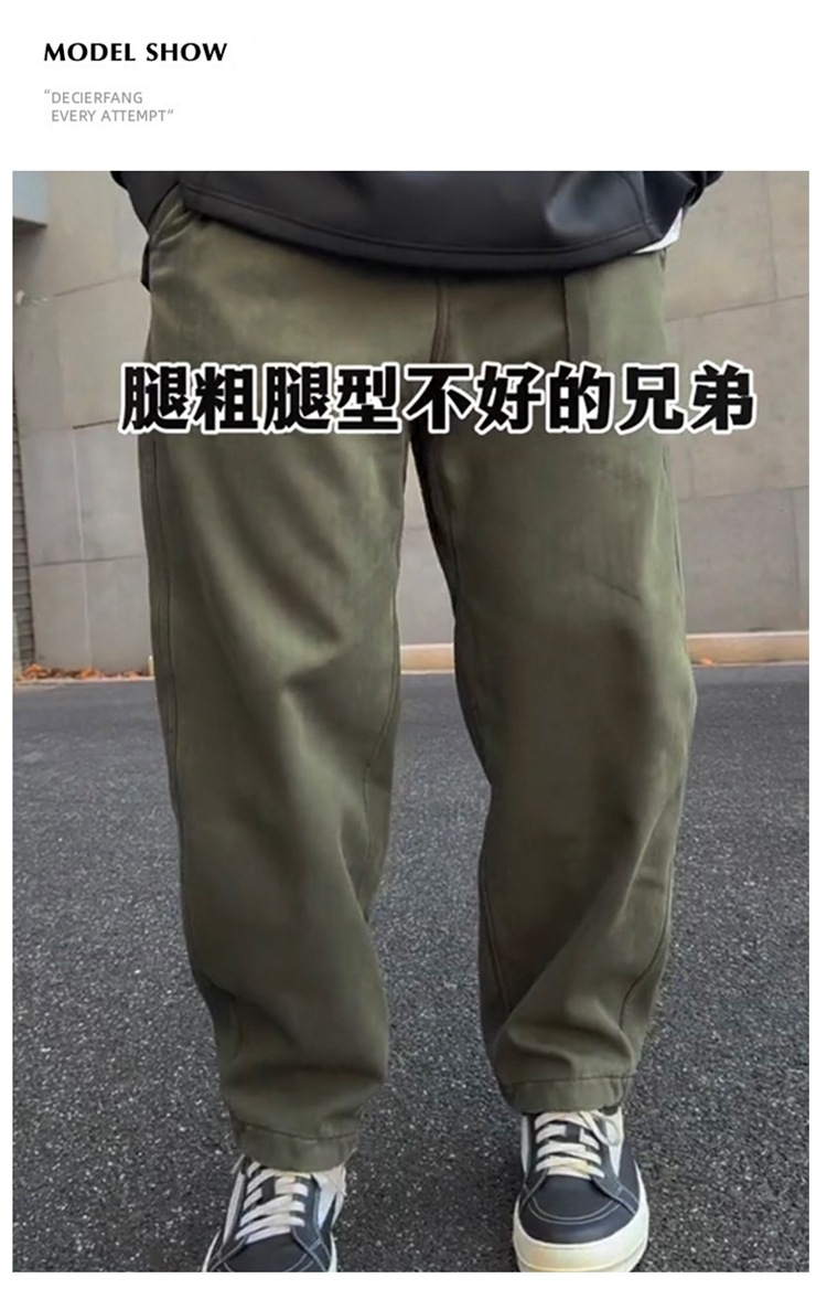 가을과 겨울 무거운 기모 두꺼운 오버볼 남자 캐주얼 와이드 레그 테이퍼 팬츠 올매치 세척 느슨한 스트레이트 팬츠스토어 가기