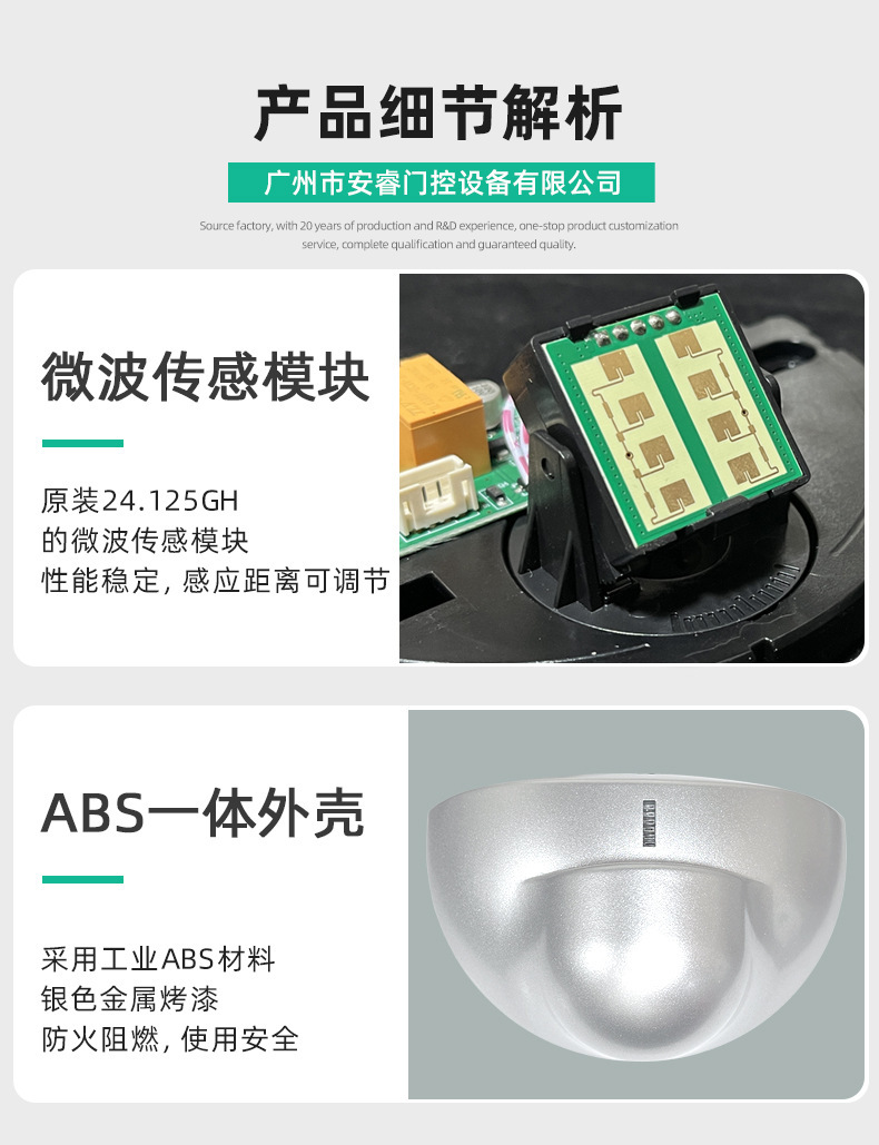 도매 24G 마이크로파 프로브 인체 동적 유도 스위치 전기 빠른 문 단방향 탐지 레이더 유도 X20