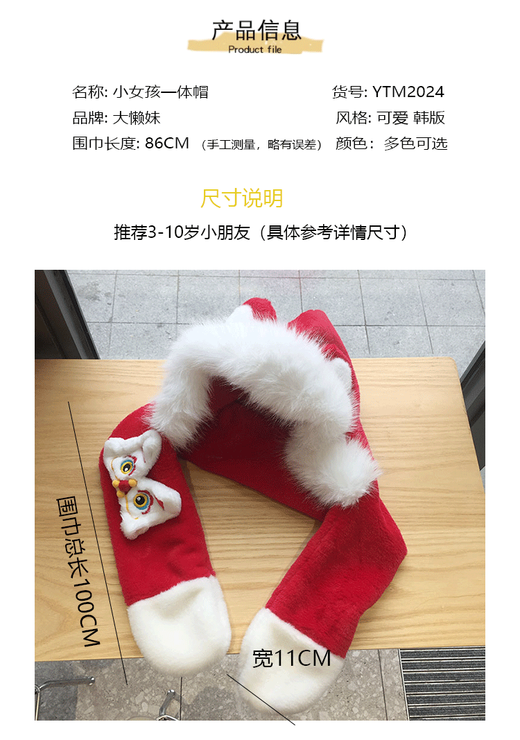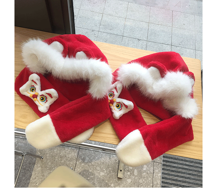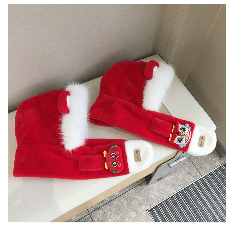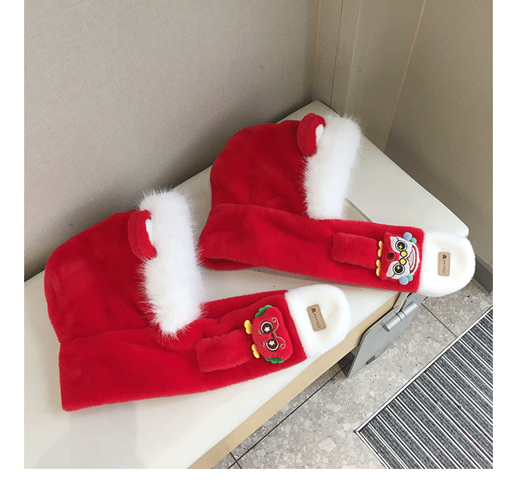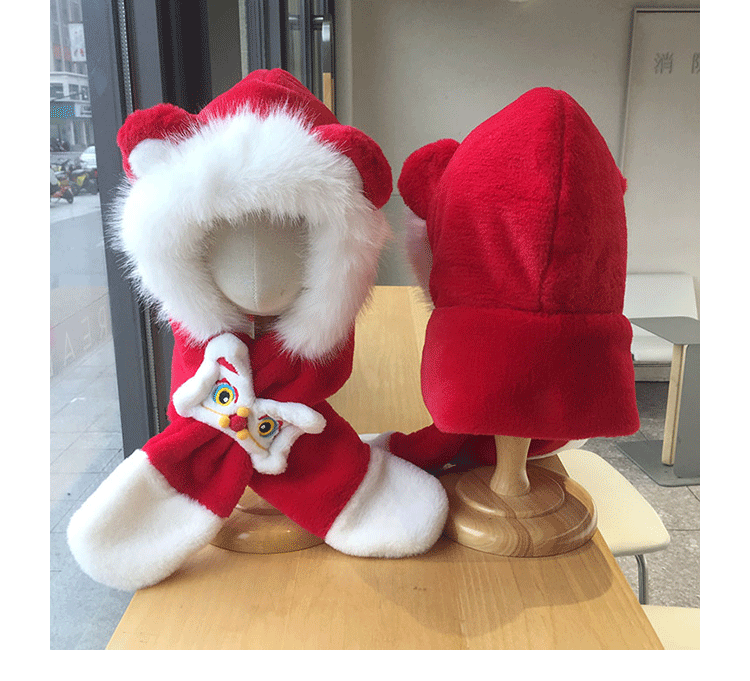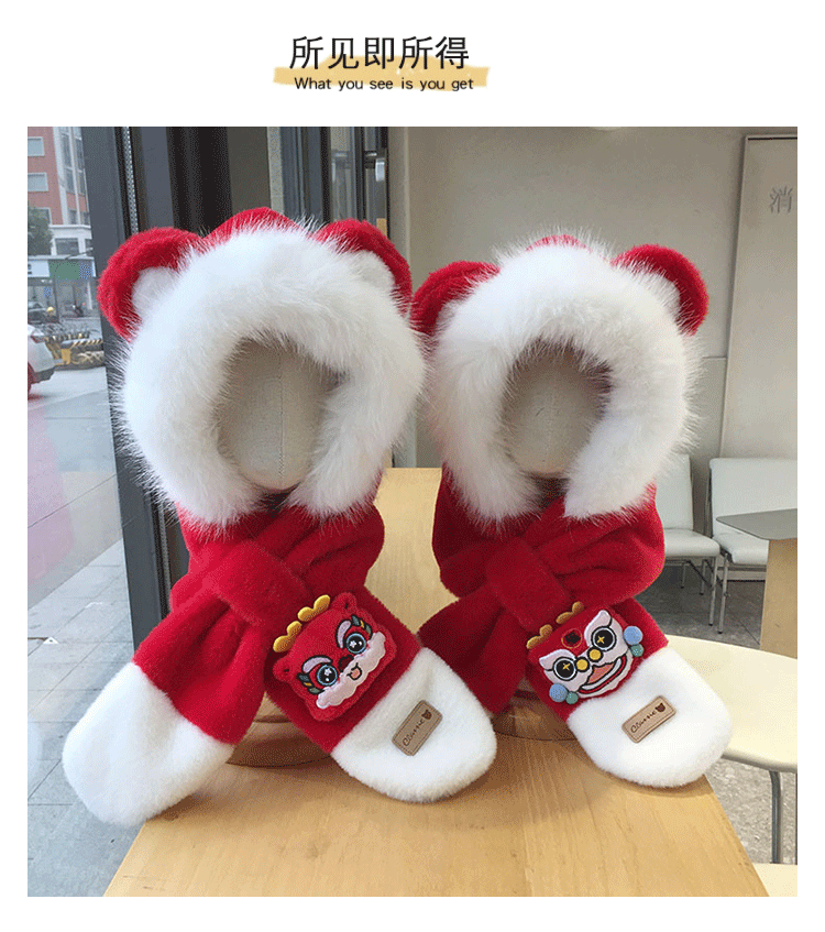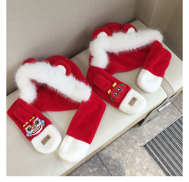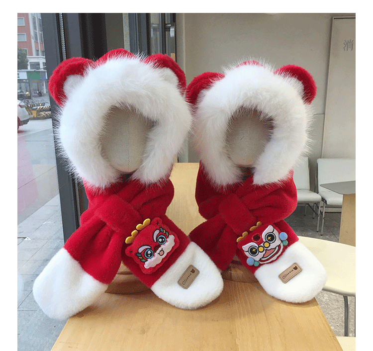 모자 스카프 통합 어린이 가을 겨울 붉은 바느질 새해 소년과 소녀 귀여운 따뜻한 축제 귀 보호 모자스토어 가기