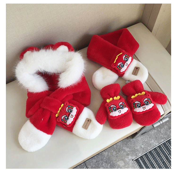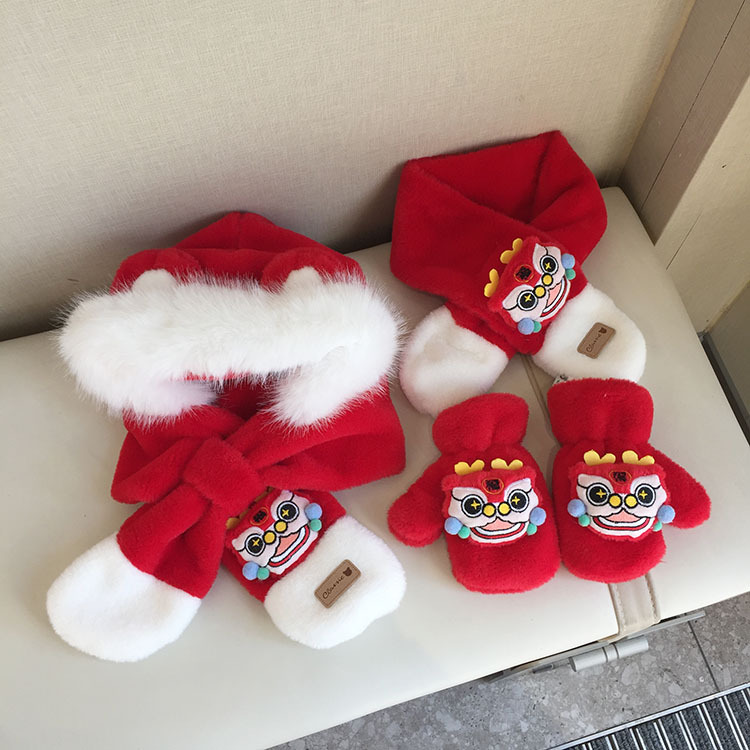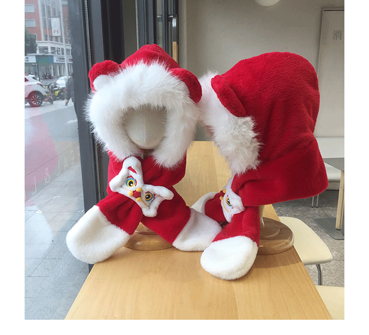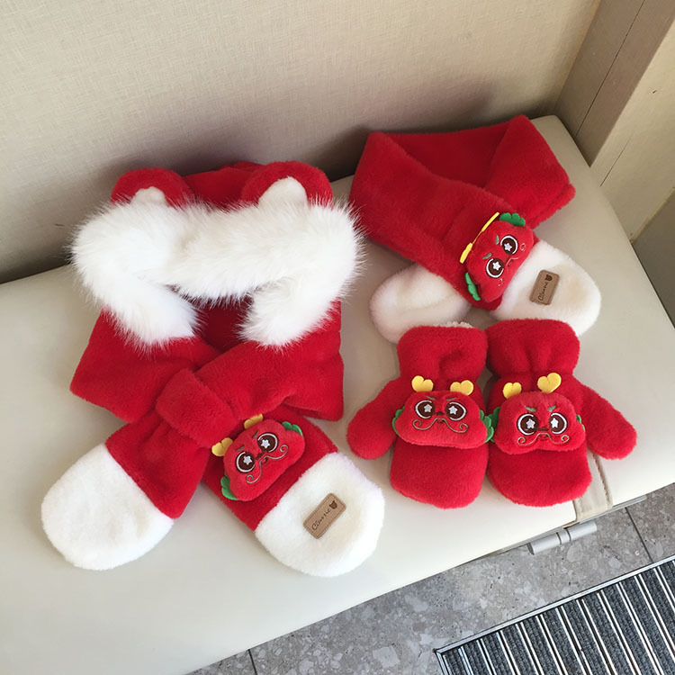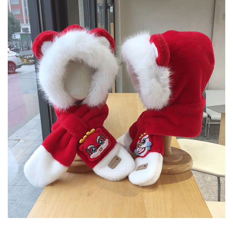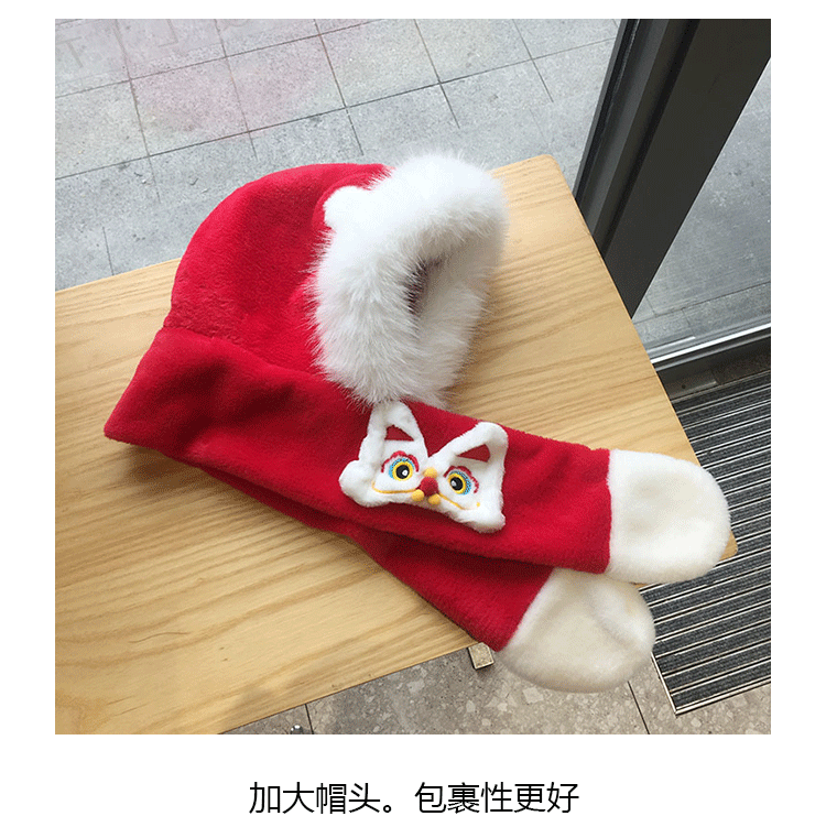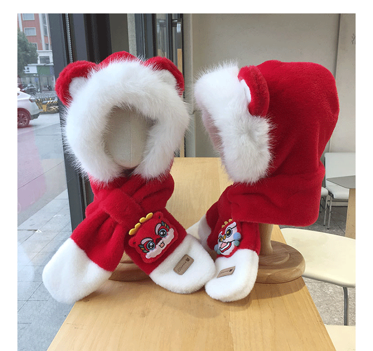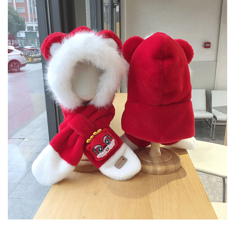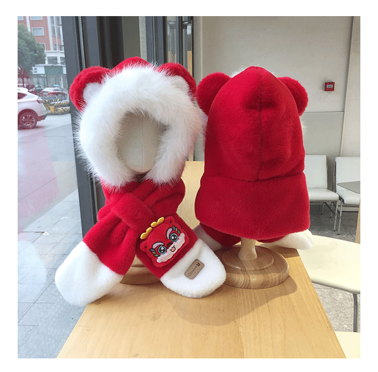 모자 스카프 통합 어린이 가을 겨울 붉은 바느질 새해 소년과 소녀 귀여운 따뜻한 축제 귀 보호 모자