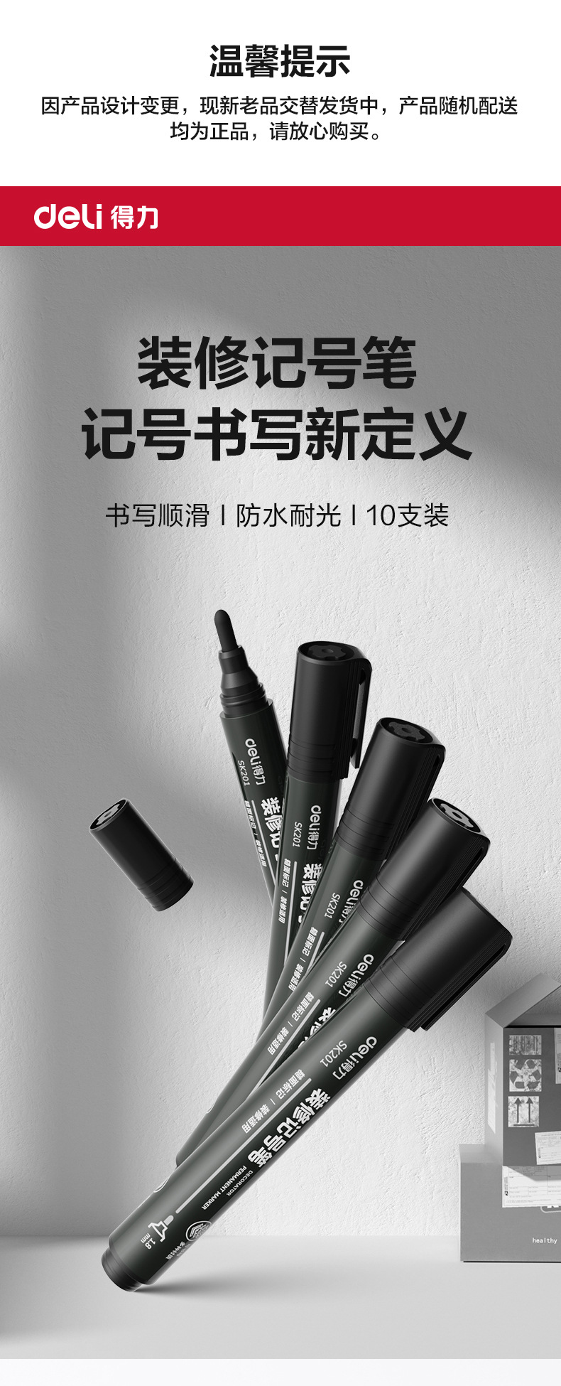 델리 SK201 블랙 마커 큰 머리 유성 두꺼운 펜 레드 마커 빠른 건조 방수 펜 도매스토어 가기