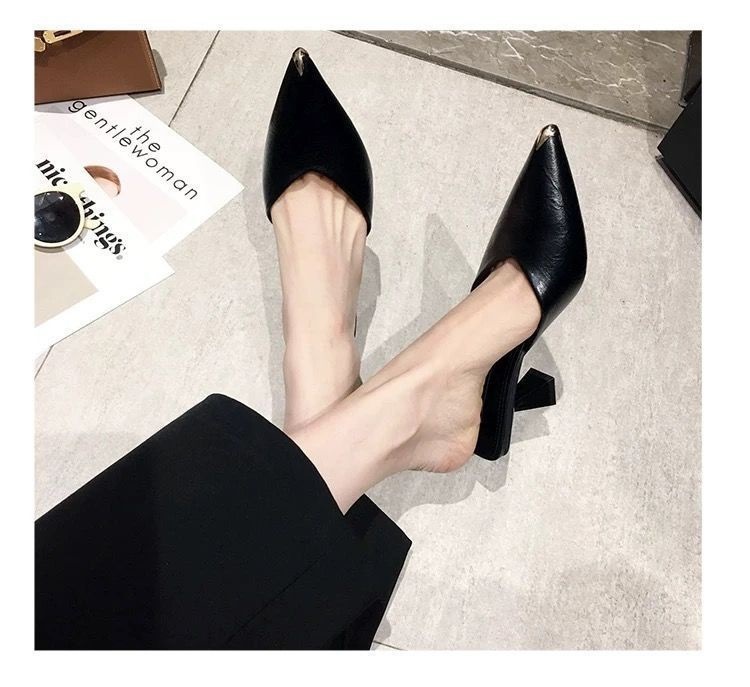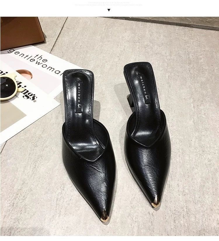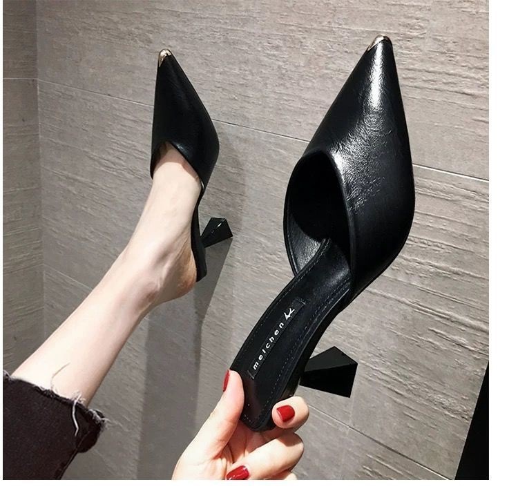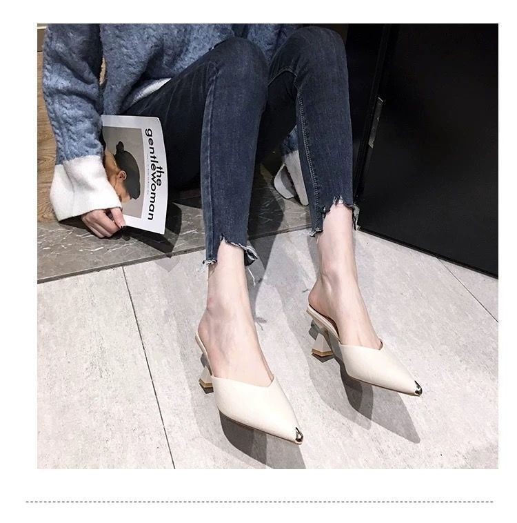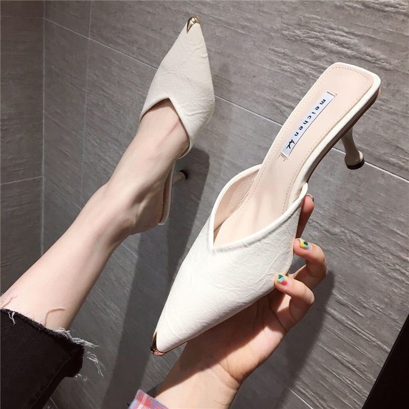 뾰족한 반 슬리퍼 하이힐 슬리퍼 여성 여름 아우터 2021 새로운 패션 두꺼운 힐 우아한 사이버 연예인 Baotou 슬리퍼 트렌디스토어 가기
